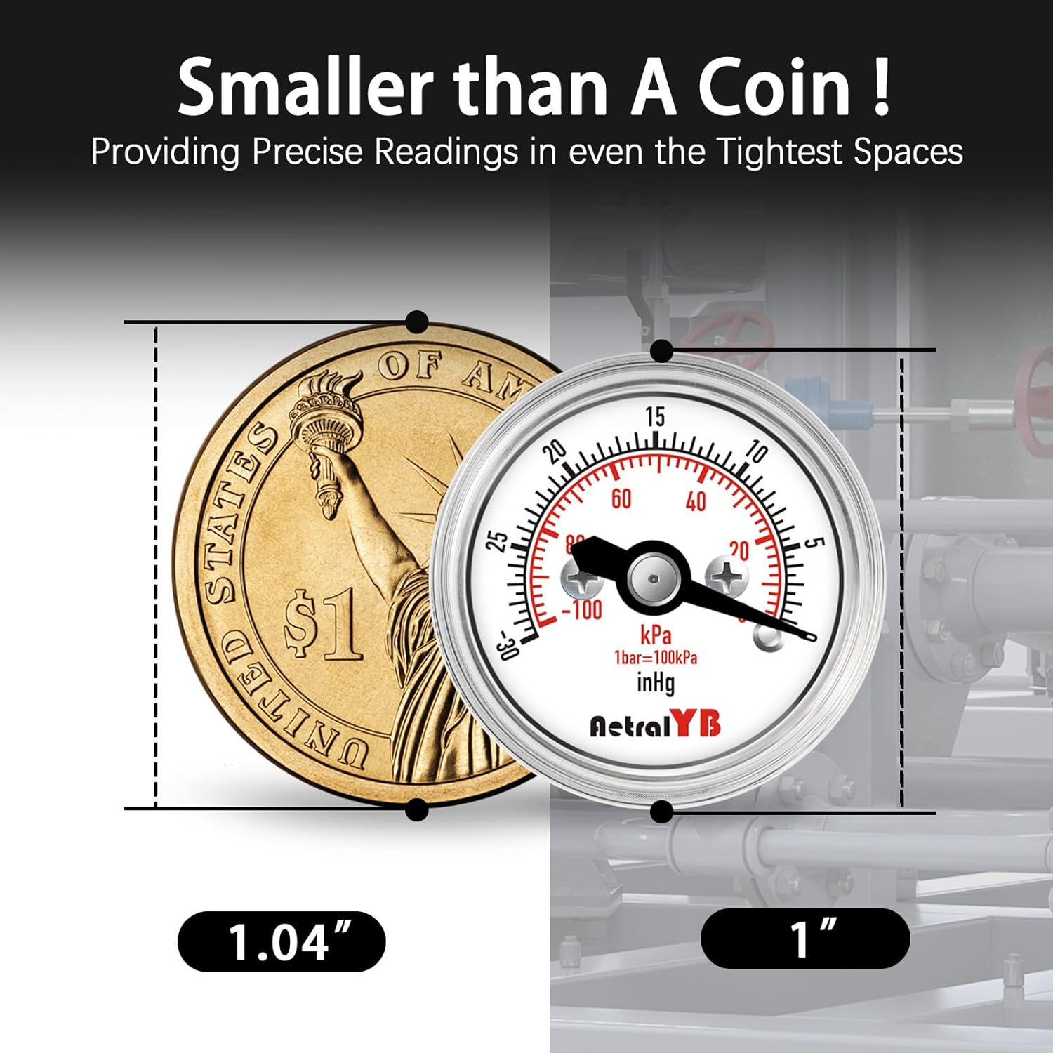 - COMPACT 1-INCH DIAL: This mini Vacuum gauge features a space-saving 1 inch dial that provides clear, easy-to-read pressure readings, making it ideal for tight spaces where precision is crucial.