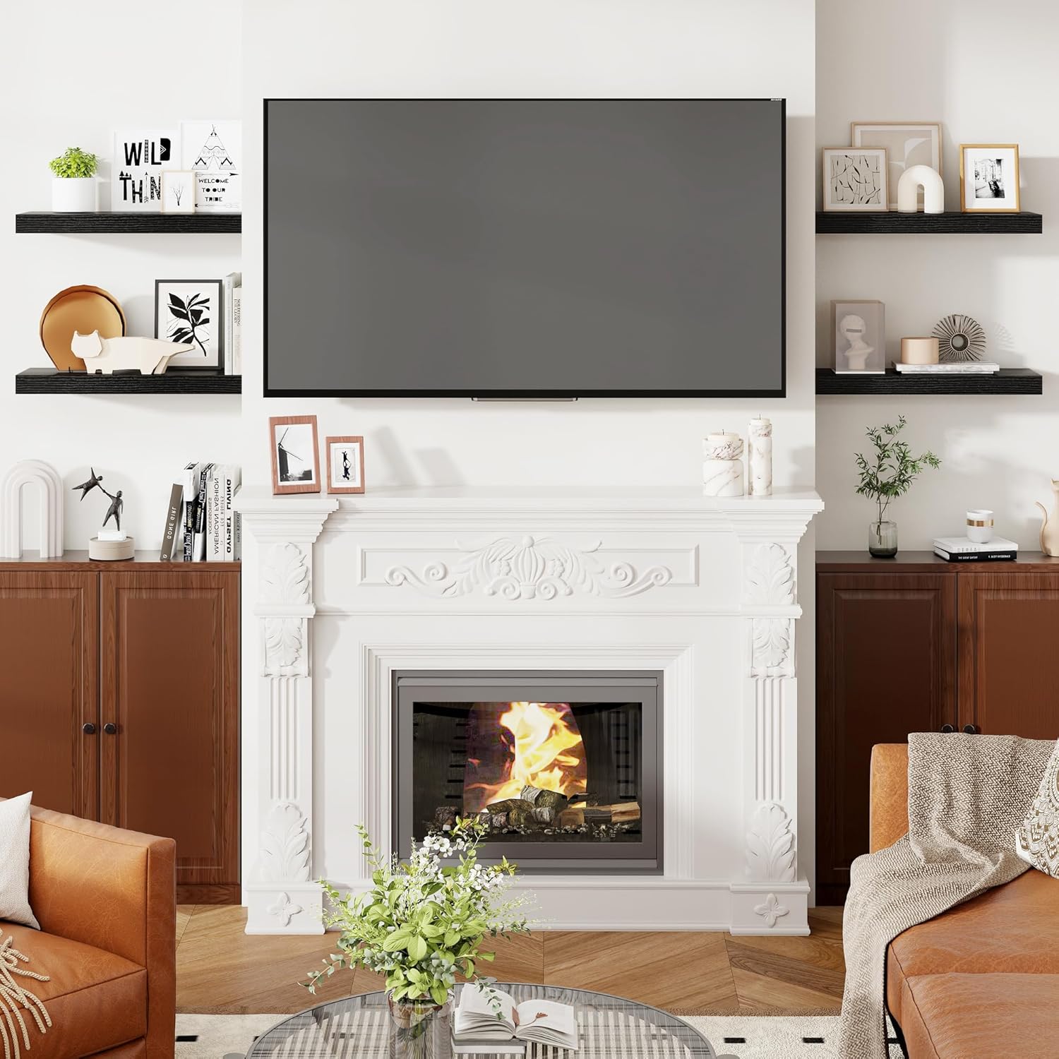 - 【Sturdy Support】Make the most of your wall space with our 24 x 8 inch black floating shelves for wall for room wall. At 1.5 inches thick, they offer sturdy support for your plants and decorative pieces. Each shelf can hold up to 30 lbs, ensuring your items never sag or fall.