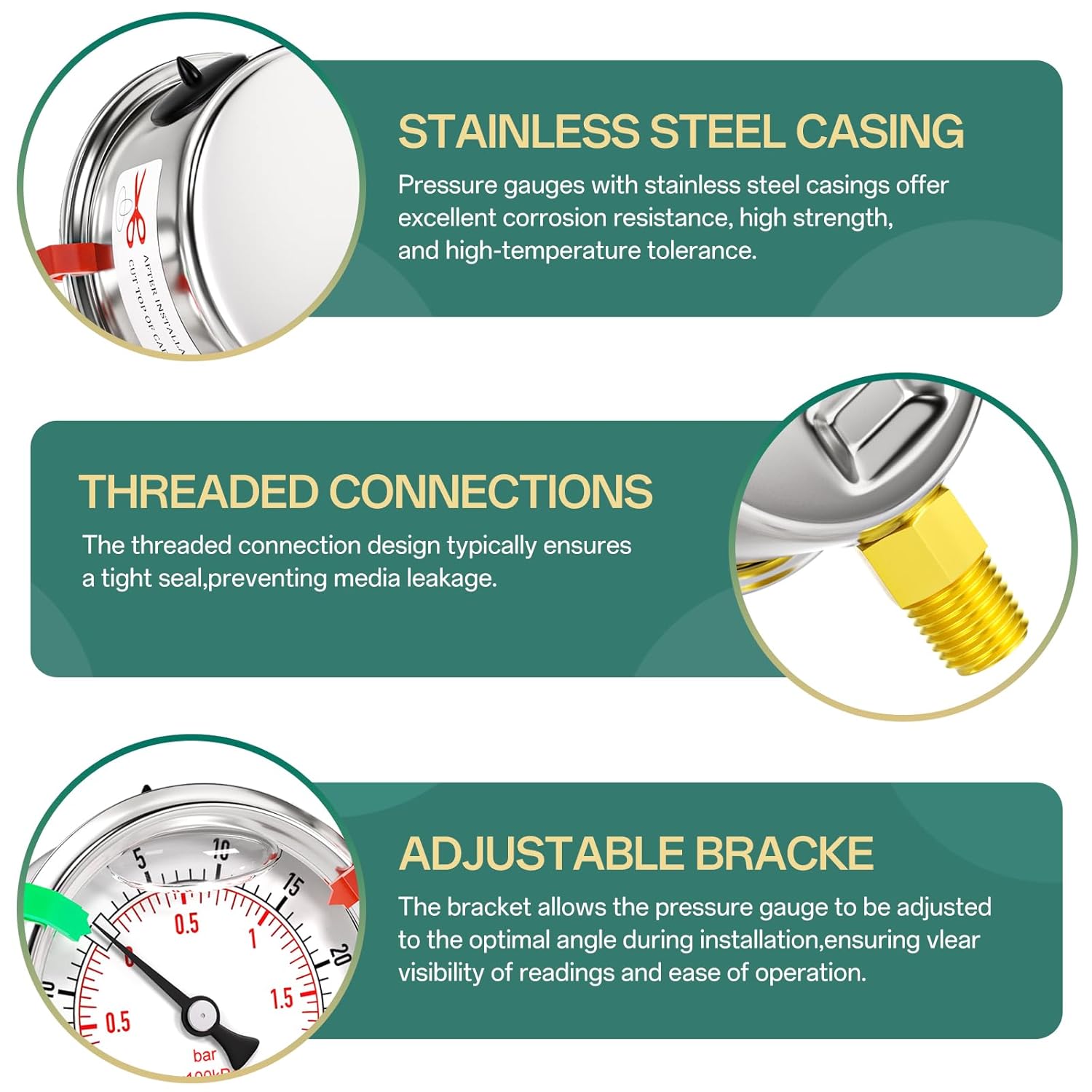 - [SIZE] 1/4" NPT; 2.5" dial face