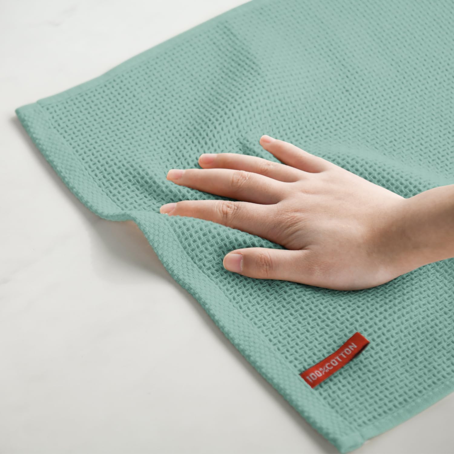 Artoid Mode 100% Cotton Light Green Waffle Weave Kitchen Dish Cloths, 12x12 Inch Ultra Soft Absorbent Quick Drying Kitchen Dish Towels Set of 6