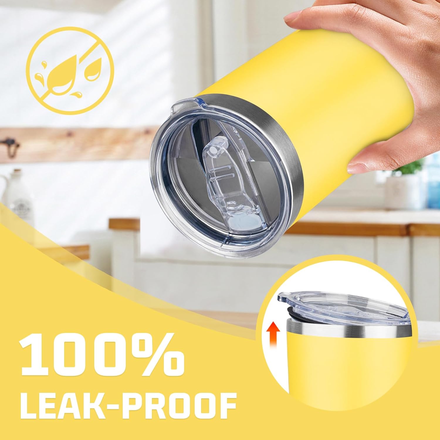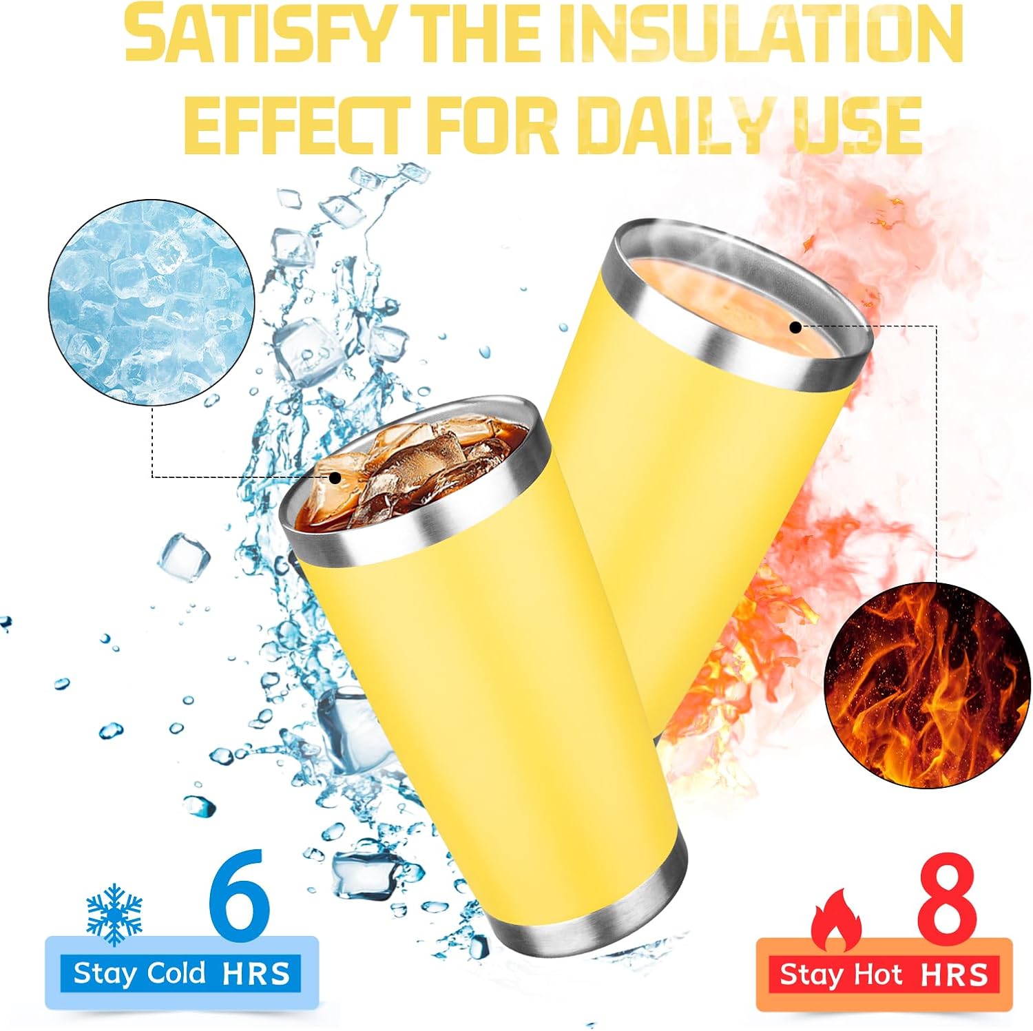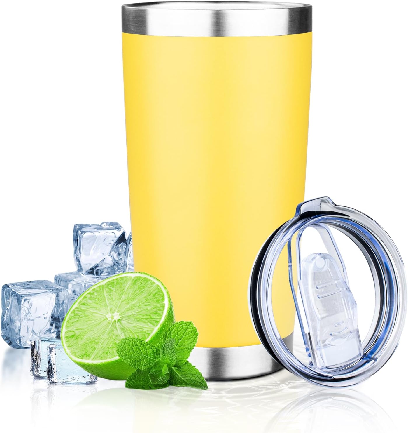 20oz Tumbler with Lid Double Wall Vacuum Insulated Travel Coffee Mug Stainless Steel Thermal Cup Powder Coated Sturdy Coffee Tumbler for Hot and Cold Beverage (Yellow,1)