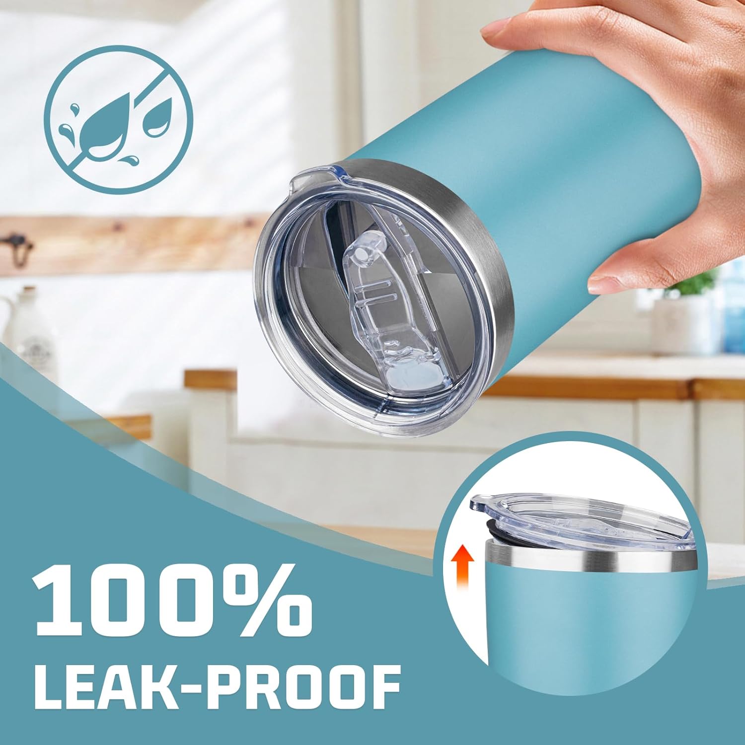 - ✅ 𝐁𝐏𝐀-𝐅𝐑𝐄𝐄 𝐚𝐧𝐝 𝐋𝐞𝐚𝐤-𝐩𝐫𝐨𝐨𝐟 𝐋𝐢𝐝: The 20 oz insulated coffee mug is equipped with a sliding lid which is BPA-free and healthy and the seal ring of the lid fits snugly into the mouth of the cup. When the sliding lid is closed, you don't have to worry about spilling your drink, even if the coffee tumbler is accidentally tilted.Our 20oz tumbler with lid for your daily or travel drinking needs, always hydrated.
