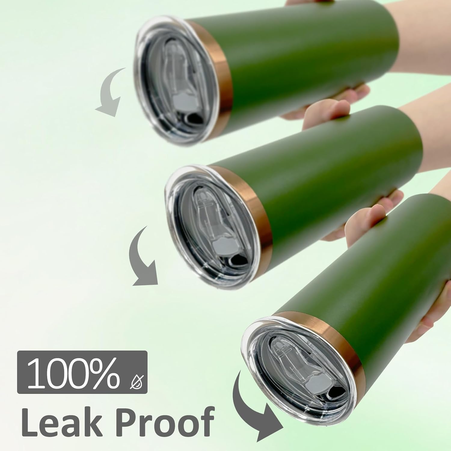 20 oz Skinny Tumblers Bulk, Stainless Steel Insulated Tumbler with Lids and Straws, Slim Double Wall Powder Coated Travel Coffee Mugs, Reusable Cup for Hot and Cold Drinks (Army Green,1 pack)