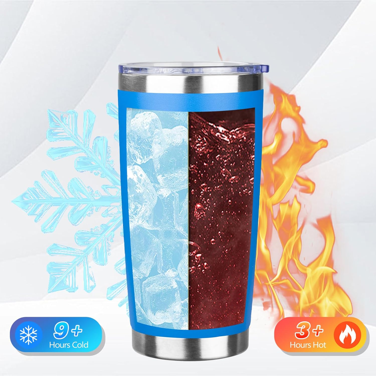 20oz Tumbler Bulk with Lid and Straw, Stainless Steel Double Wall Vacuum Insulated Travel Mug, Powder Coated Coffee Cups for Hot and Cold Drinks,Funny Gifts for Women Men(Scuba blue,1)