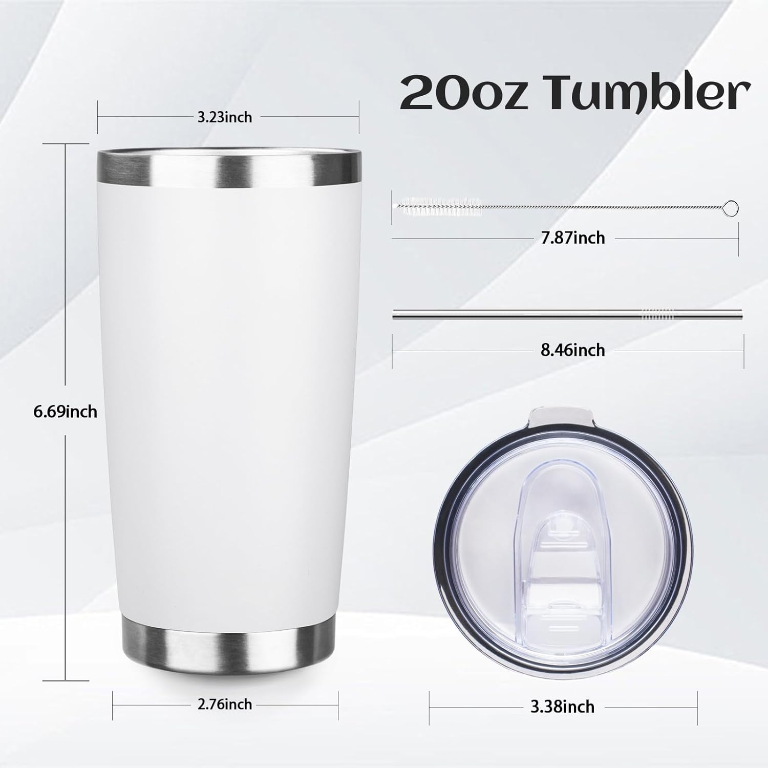 20oz Tumbler Bulk with Lid and Straw, Stainless Steel Double Wall Vacuum Insulated Travel Mug, Powder Coated Coffee Cups for Hot and Cold Drinks,Funny Gifts for Women Men(White,6)