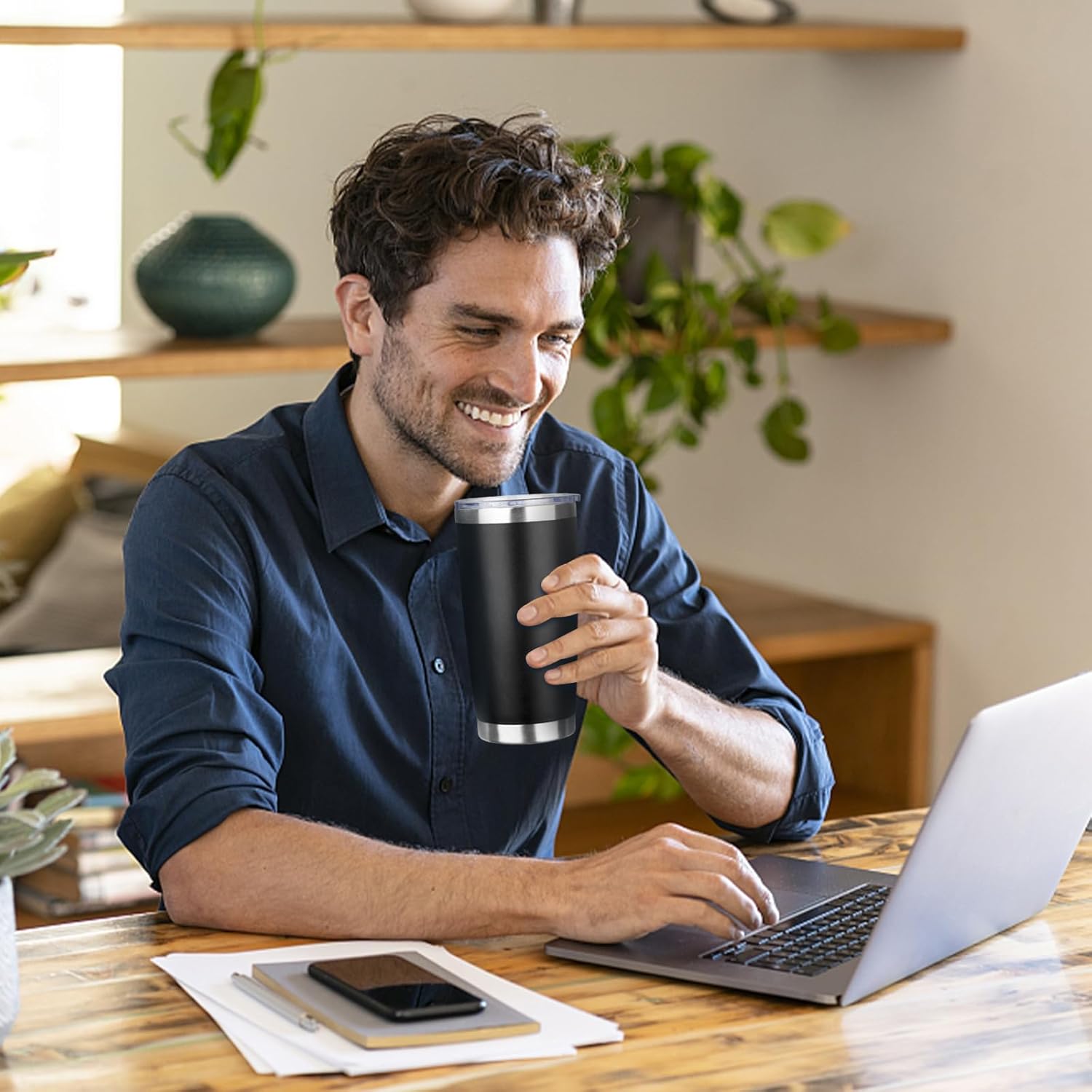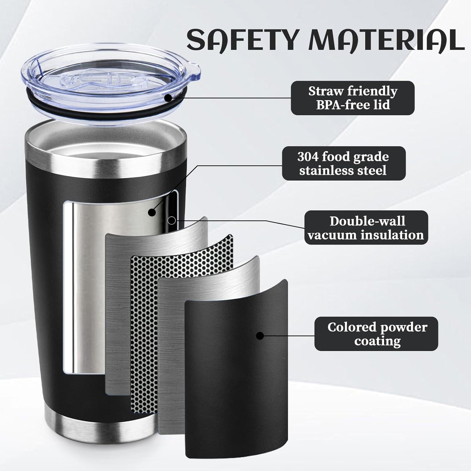20oz Tumbler Bulk with Lid and Straw, Stainless Steel Double Wall Vacuum Insulated Travel Mug, Powder Coated Coffee Cups for Hot and Cold Drinks,Funny Gifts for Women Men(Black,6)