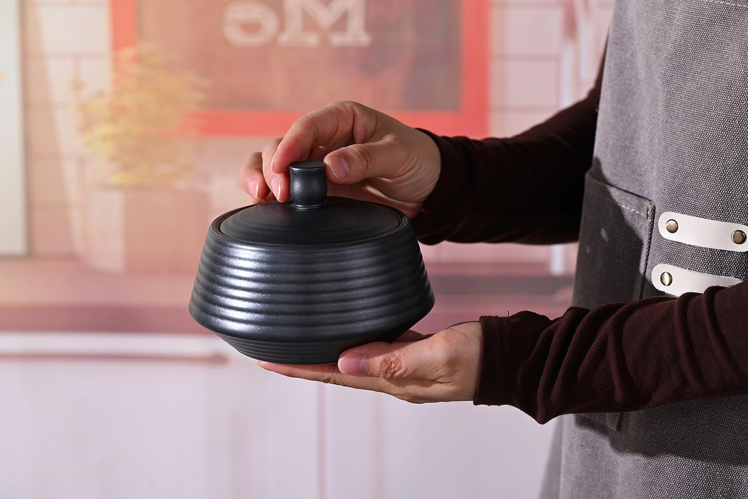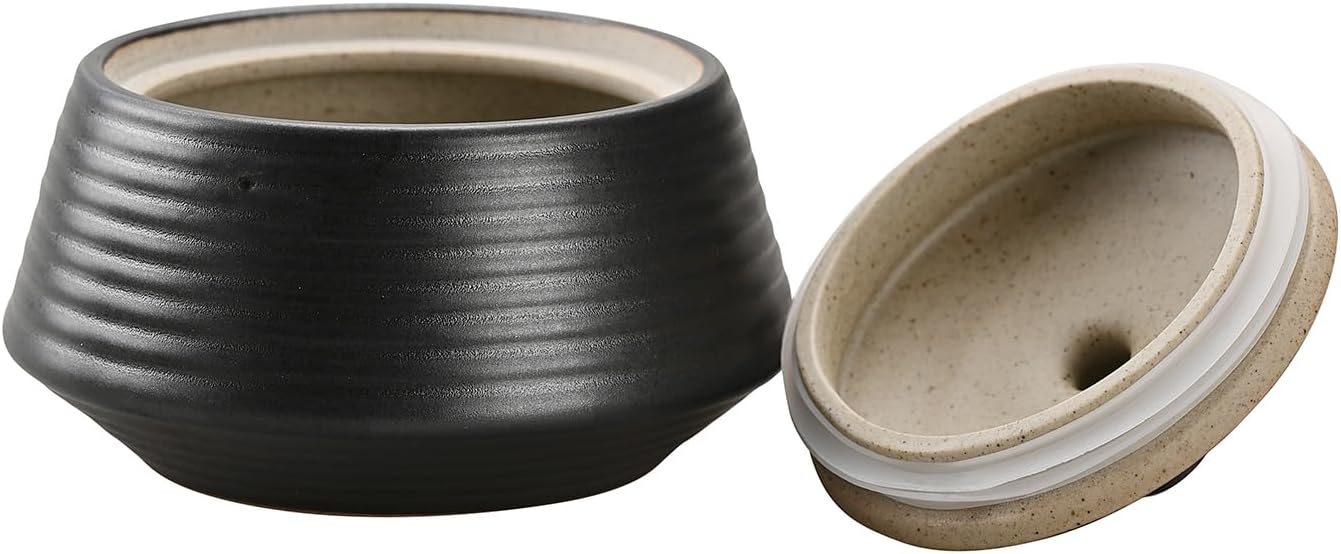 Retro Kitchen Canisters Ceramic Food Storage Jar Roud Shape with Silicone Airtight Lid for Tea, Coffee, Nuts, Herb, Spice, Sugar (Low Black)
