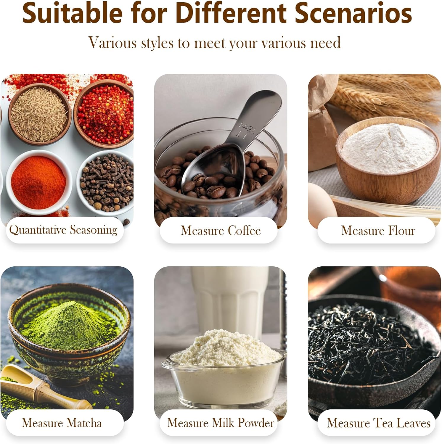 - Clear Engraved Markings:Each coffee scoop has clear laser-engraved markings (1T 15ML, 2T 30ML), a 2-in-1 design for espresso and coffee beans, durable, resistant to bending, and easy to grip, ensuring precise measurements every time.