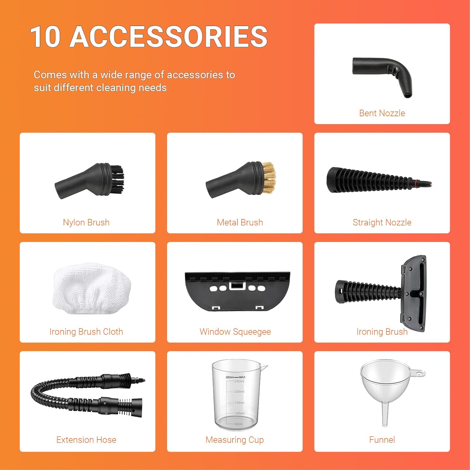 - 【 10 Pro Tools for Precision Work】With different tools, you can clean glass windows, the inside of toilets, kitchen countertops, stoves, range hoods, floors, sofas, curtains, and cars