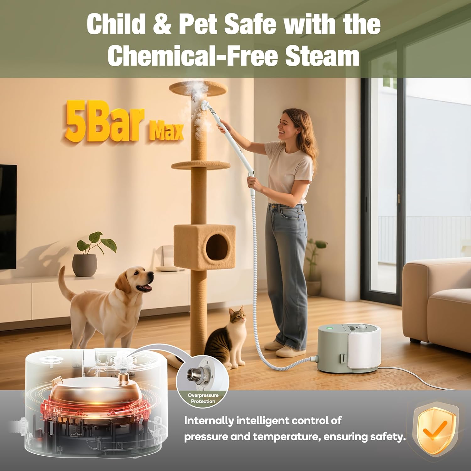 - [Multi-Layer Safety Mechanism] Engineered with pressure and temperature controls, this system ensures stable, consistent operation. With an advanced safety valve, overpressure protection enhances safety by preventing pressure buildup—while steam-only cleaning keeps it friendly to kids and pets. NOTE: Designed for 110~125-volt outlets only.