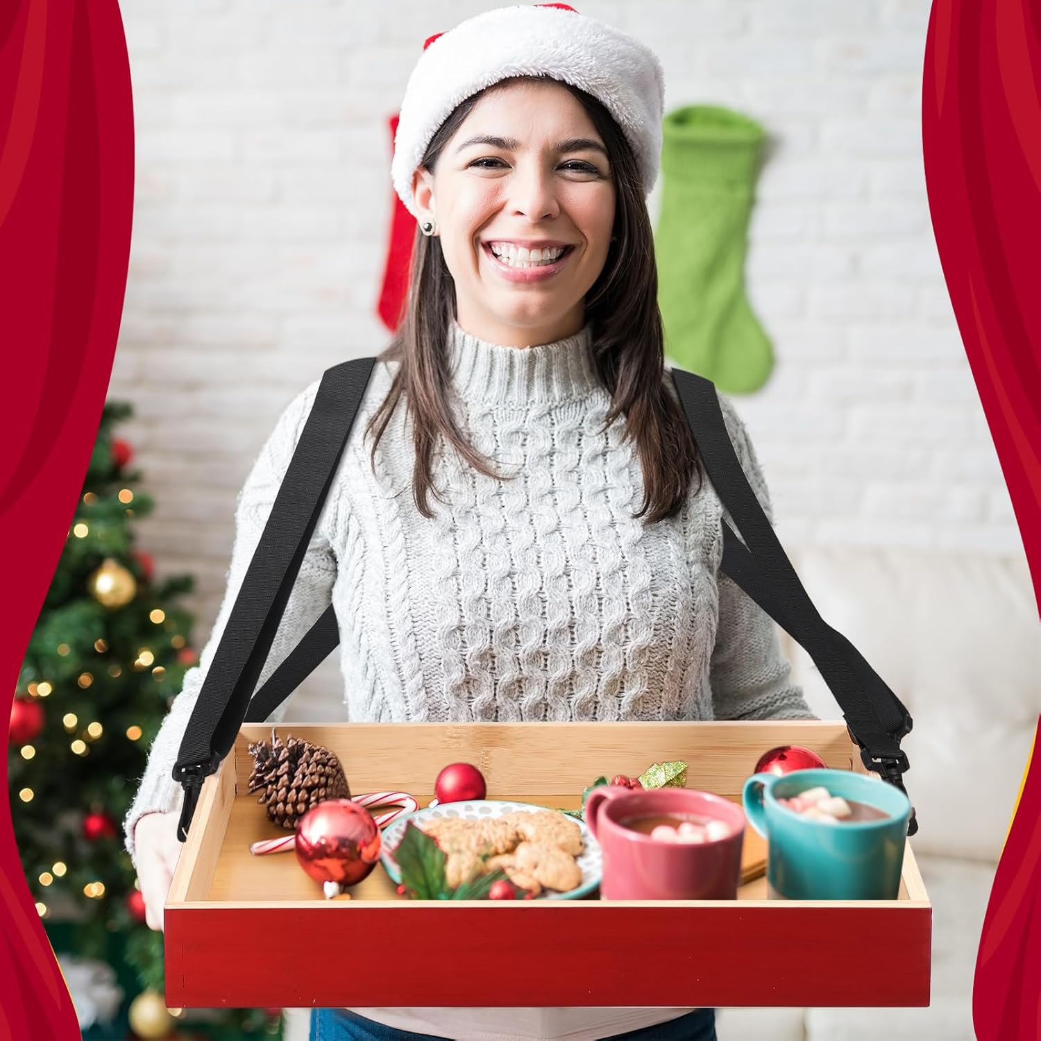 - Large Capacity: our wooden snack tray measures about 15.75 x 11.81 x 2.17 inches/ 40 x 30 x 5.5 cm, which has ample space for you to hold a variety of snacks and drinks, and the adjustable straps are 1.26 x 59.06 inches/ 3.2 x 150 cm, which can be adjusted the proper the length you want