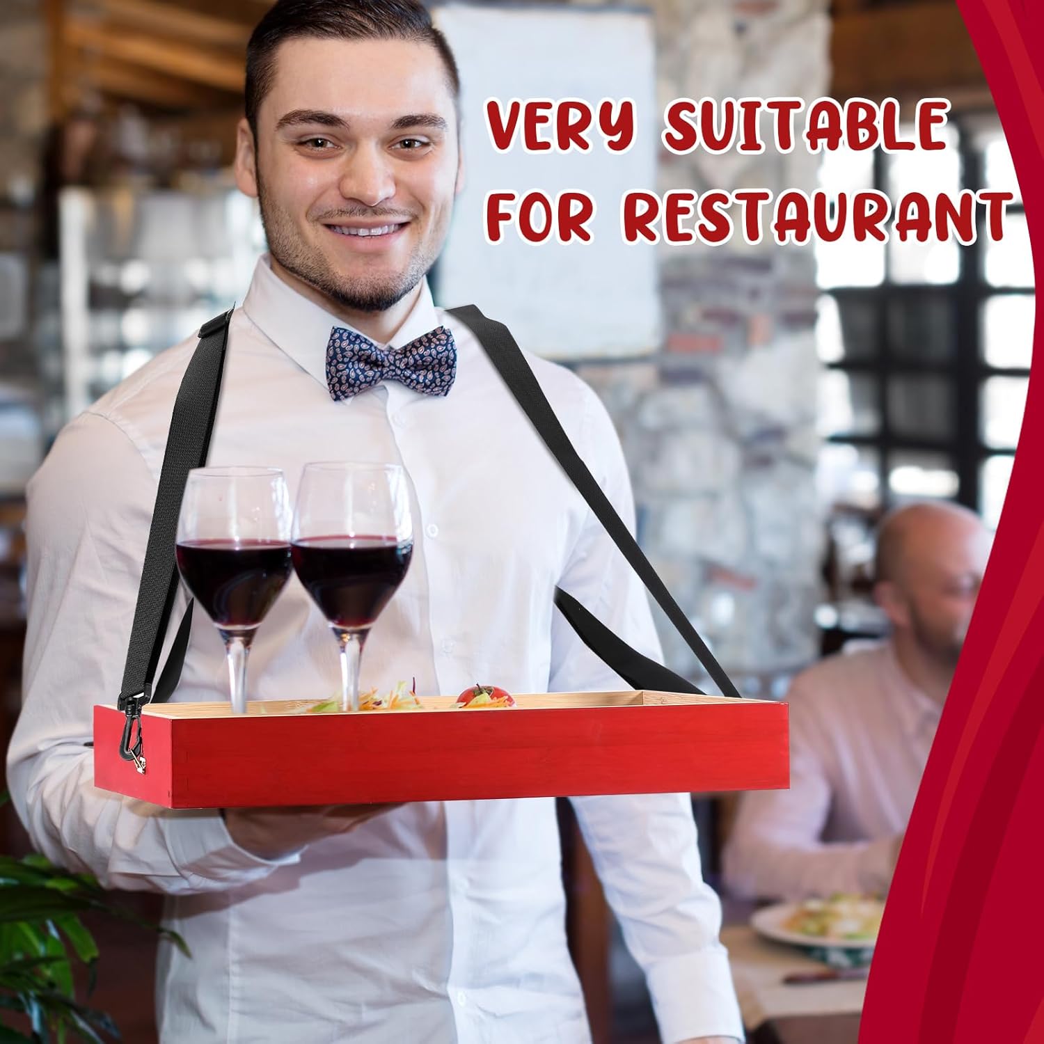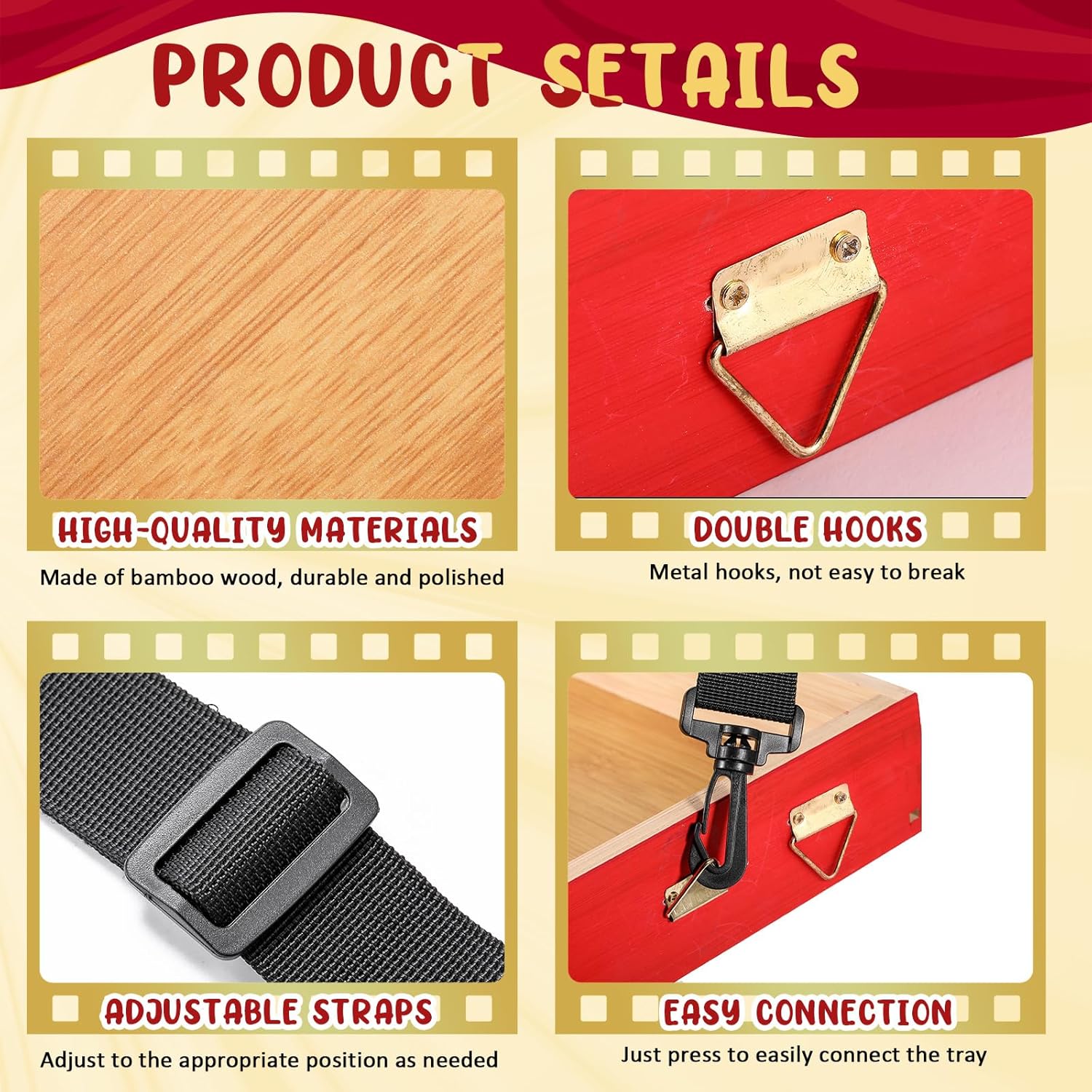 - Reliable and Sturdy: our retro beverage trays are made of quality wood, durable and safe, ensuring they can handle a variety of snacks and drinks without compromising quality; The straps are made of plastic and nylon materials, strong and lasting; You can tie a ribbon around your neck and back to easily fix the tray