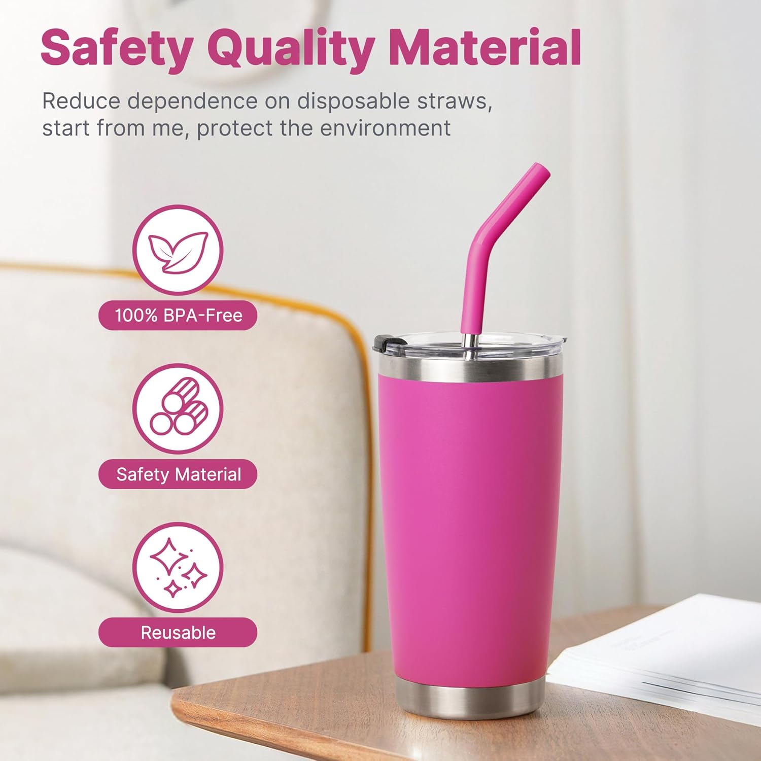 Metal Straws for 20 oz YETI Tumbler Mug, 8.5" Reusable Stainless Steel Drinkin Straws with Silicone Tip for CIVAGO, ALBOR, BJPKPK 20 oz Tumbler