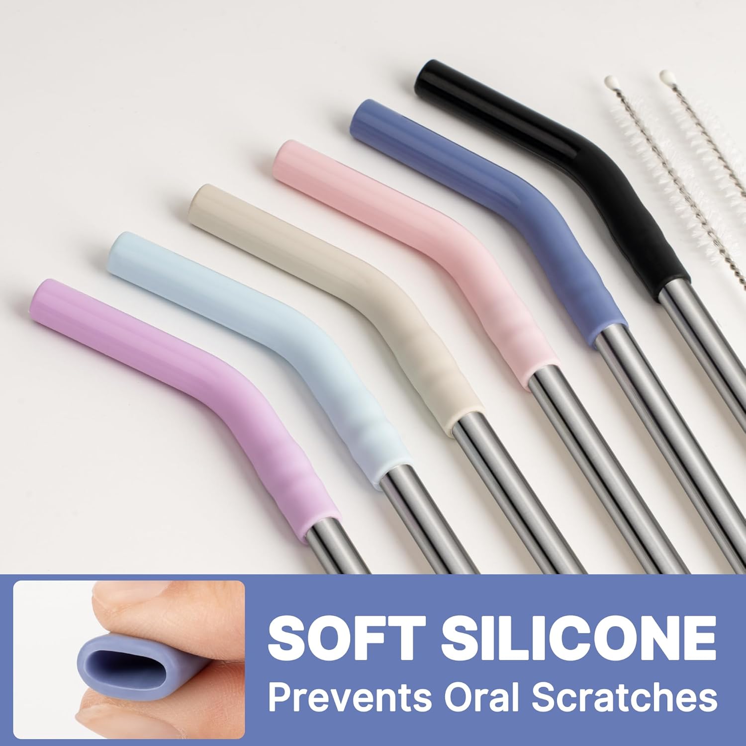 - Silicone Tips: Flexible silicone tip providing a soft and comfortable touch, avoiding teeth collision when drinking and . kids or people with sensitive teeth can also use it without worry, and say goodbye to the discomfort of metal touch!