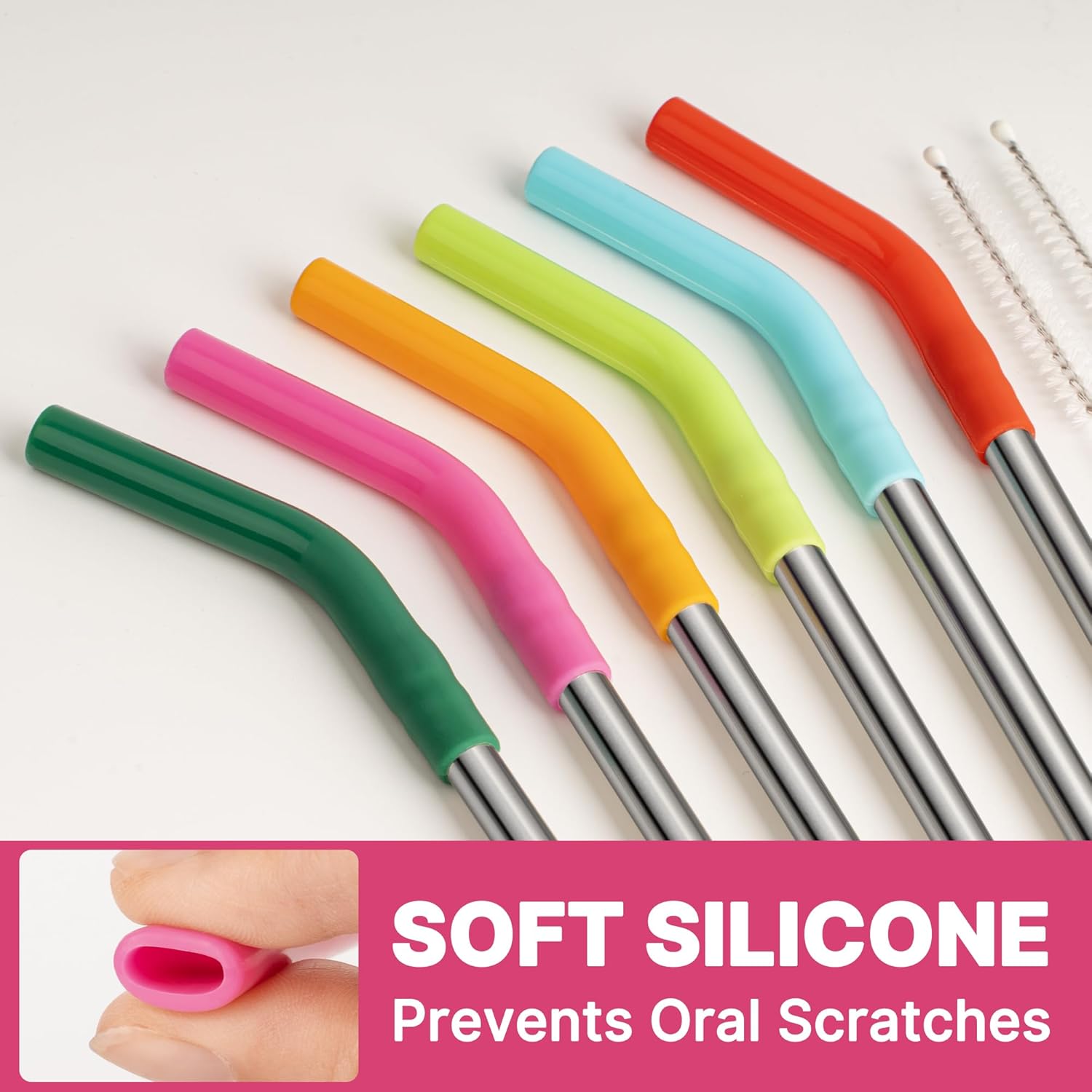 - Silicone Tips: Flexible silicone tip providing a soft and comfortable touch, avoiding teeth collision when drinking and . kids or people with sensitive teeth can also use it without worry, and say goodbye to the discomfort of metal touch!