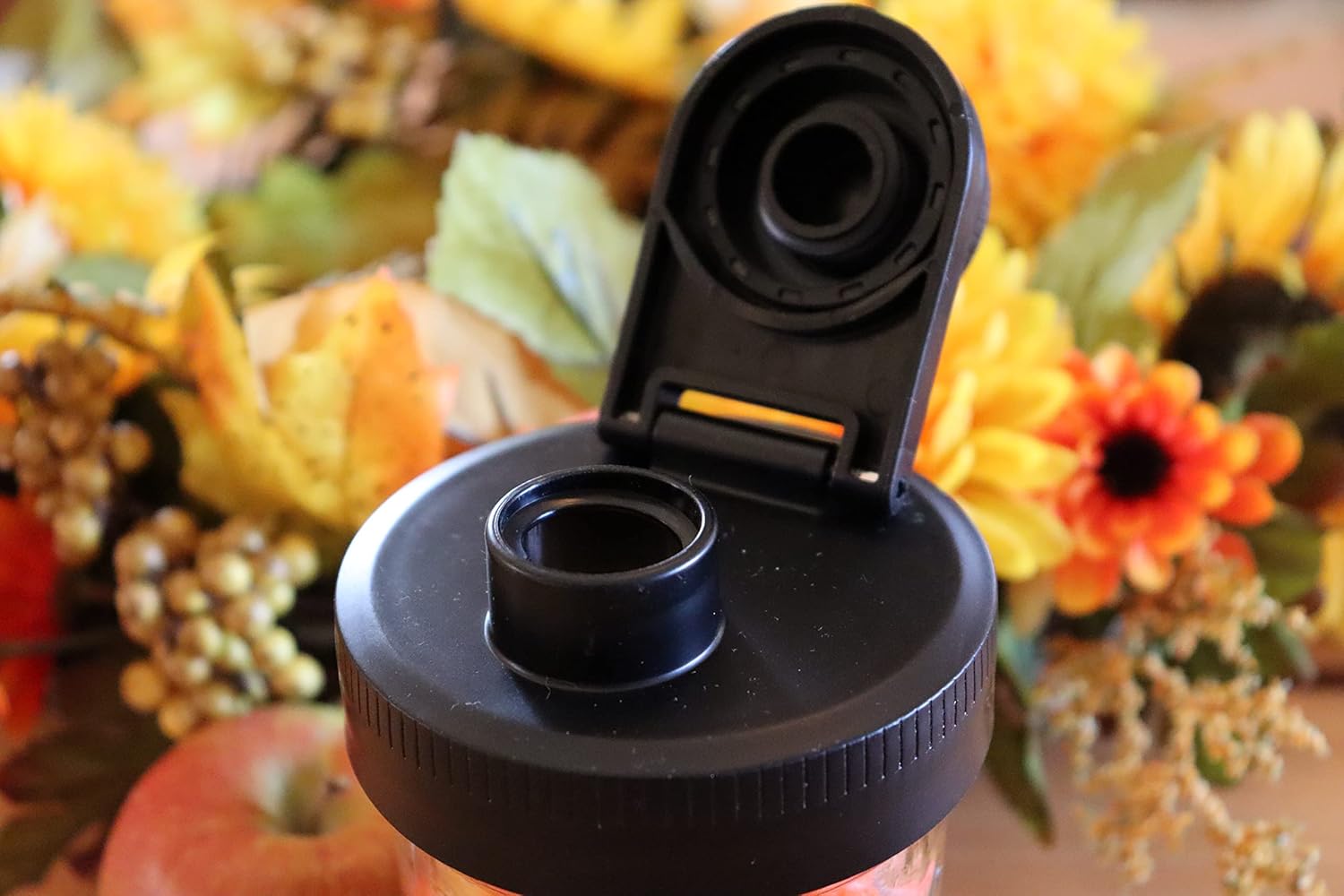 Brewing America Mason Jar Drinking Cup Pint and Half Drinking Lid and Azure 24oz Jar (1, Black)