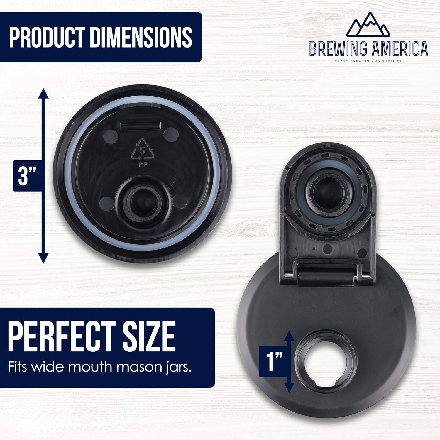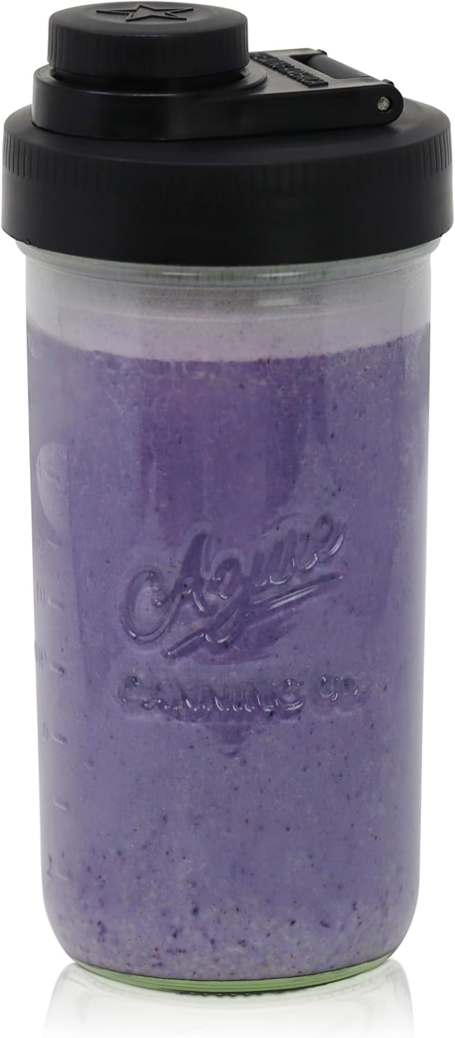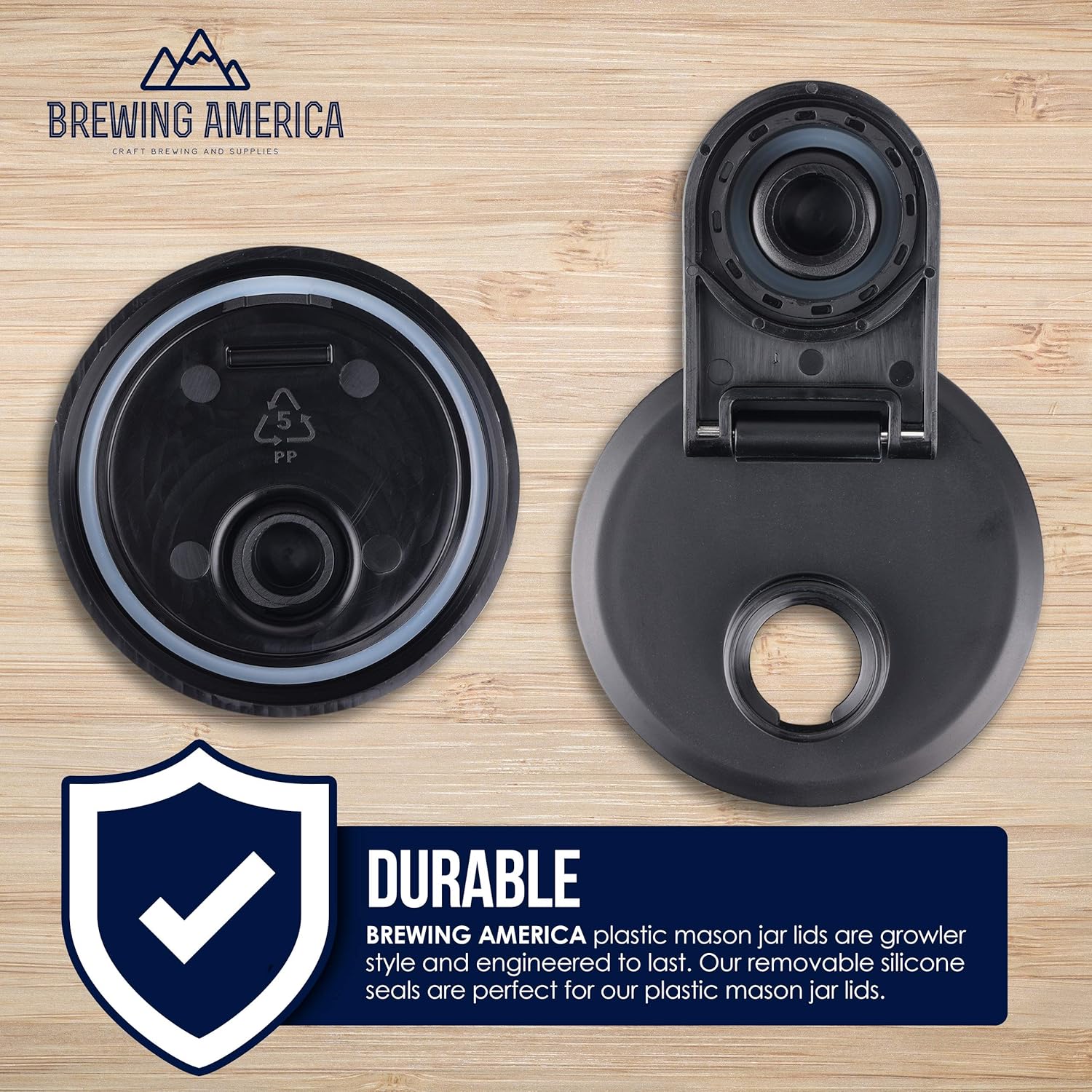 Brewing America Mason Jar Drinking Cup Pint and Half Drinking Lid and Azure 24oz Jar (2, Black)
