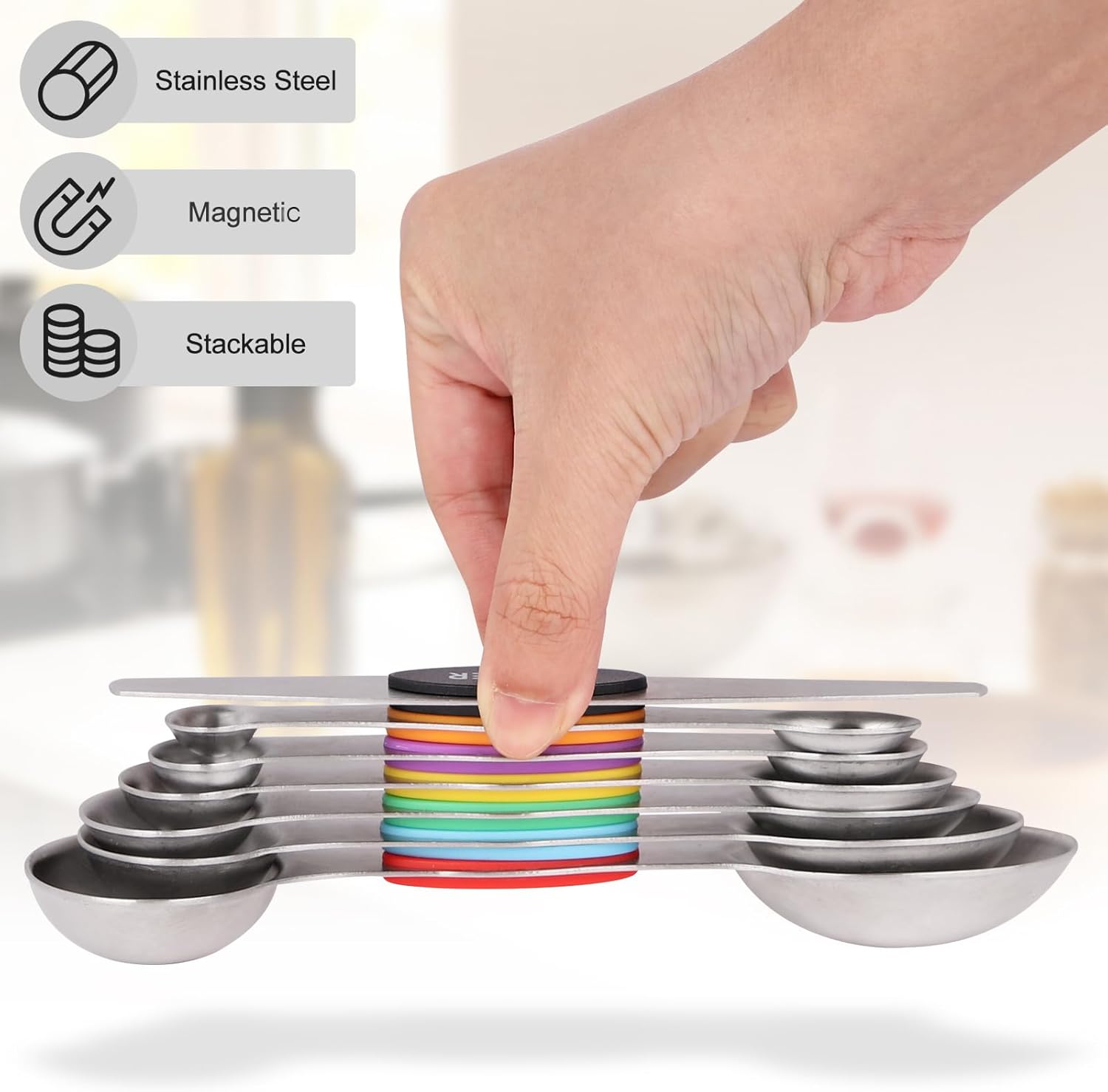 - Magnetic Nesting Design for Effortless Storage: Magnets keep the stainless steel measuring spoons set securely nested yet easily detachable – grab the size you need instantly without tangled rings. Compact design saves drawer space while engraved US/metric markings stay visible forever