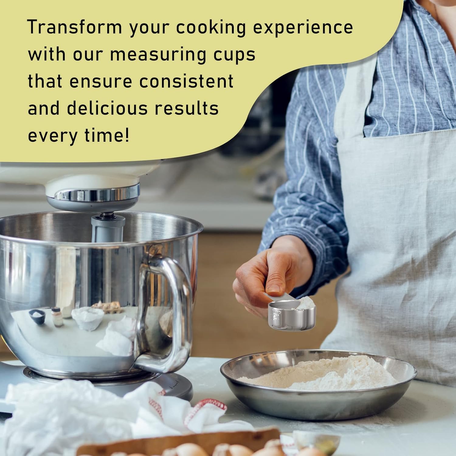 - Easy to Use: Measuring cups have a smooth surface, excellent touch, easy to clean, never rust, and the hole in the handle allows you to hang them up and save space in the kitchen
