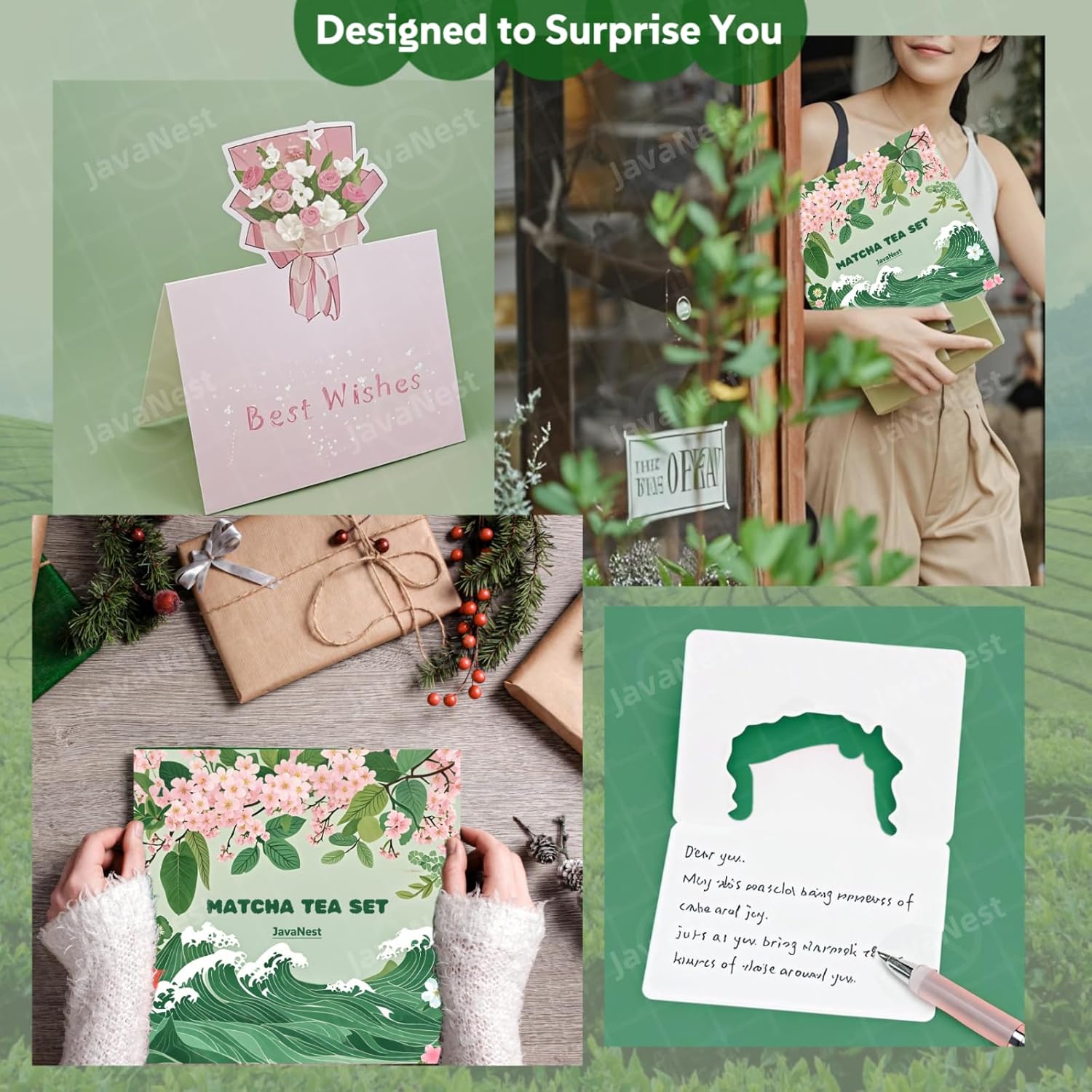 7-Piece Matcha Tea Set with Gift Card – 120-Prong Bamboo Whisk, Ceramic Bowl with Spout, Whisk Holder, Scoop, Spoon, Strainer & Scoop Holder – Ideal Gift for Matcha Lovers (Pink)
