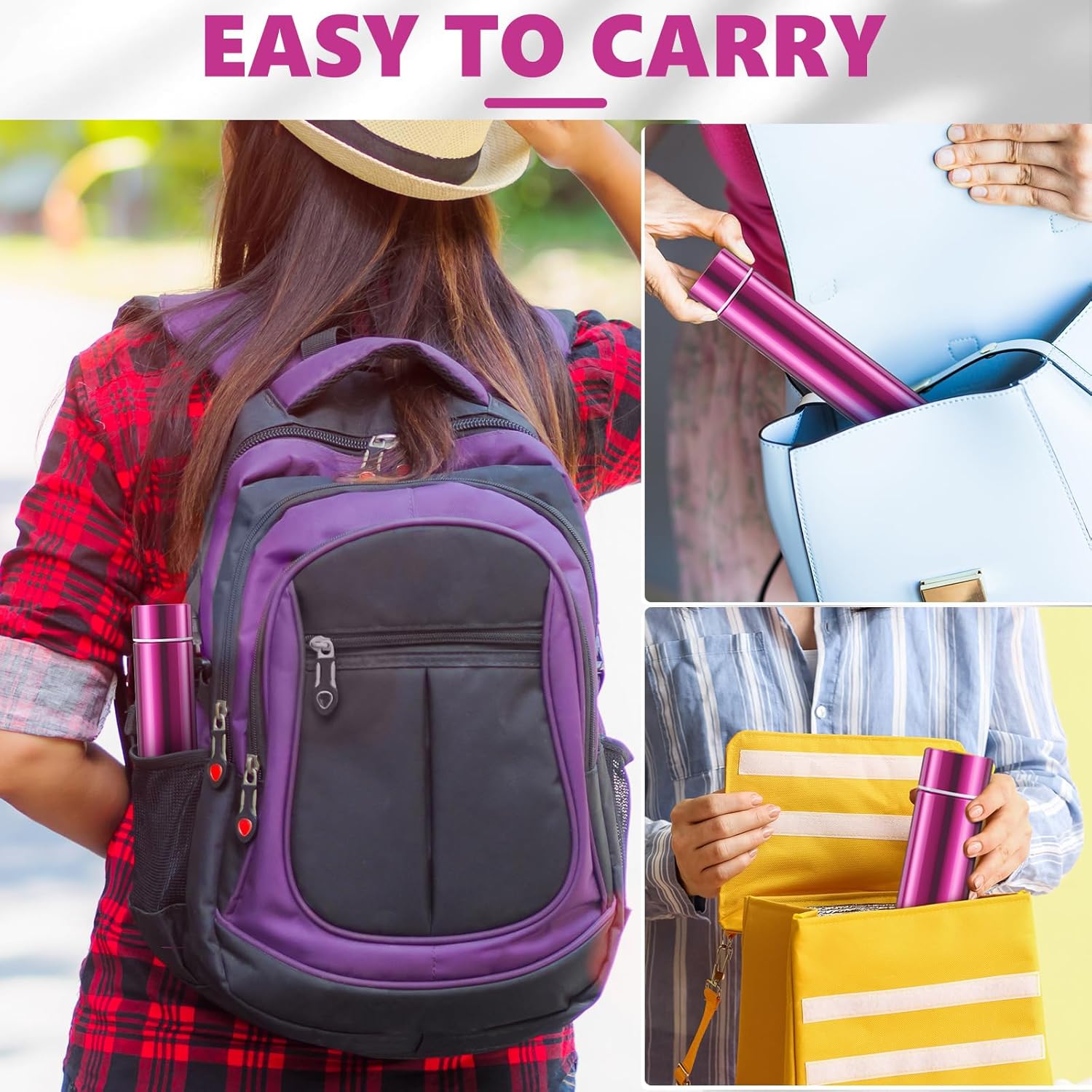 - Slim and Easy to Carry: our slim water bottle for purse is thin and long, you can hold it with one hand; You can easily put it into your backpack, lunch bag, handbag, purse, tote bag's side pockets, travel purse, women's purse, fishing pack, gym bag, or suitcase, so you won't need to use a disposable cup or another person's cup; We remind you to carefully check if the lid is tightened before placing it in your backpack