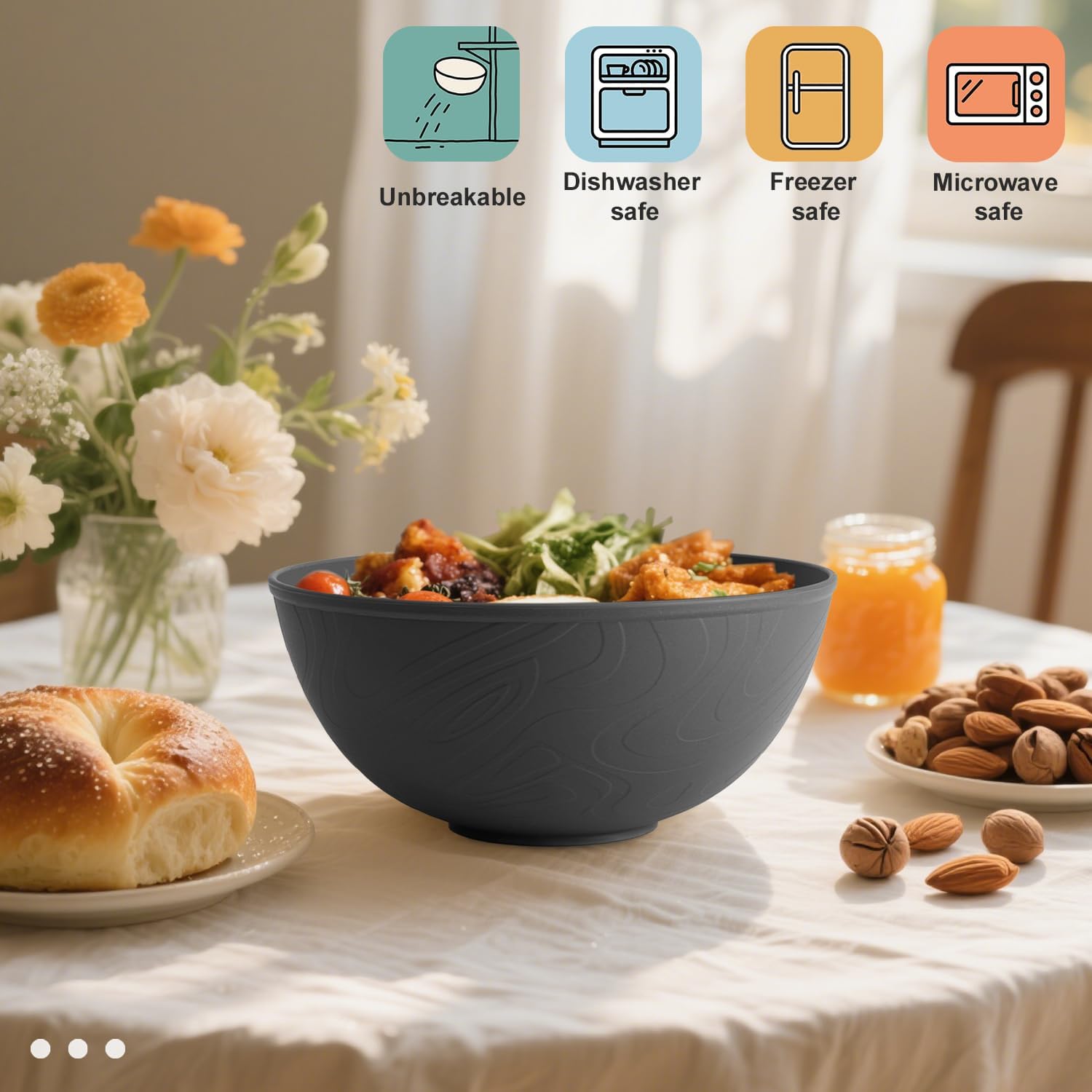 - ใ๐๐น๐๐ฒ๐ฟ๐ป๐ฎ๐๐ถ๐๐ฒ ๐๐ผ ๐ฃ๐น๐ฎ๐๐๐ถ๐ฐใ- Wrova 40oz salad bowls are constructed with organic wheat straw fiber and food-grade PP, 100% BPA free, non-toxic and environmentally friendly.