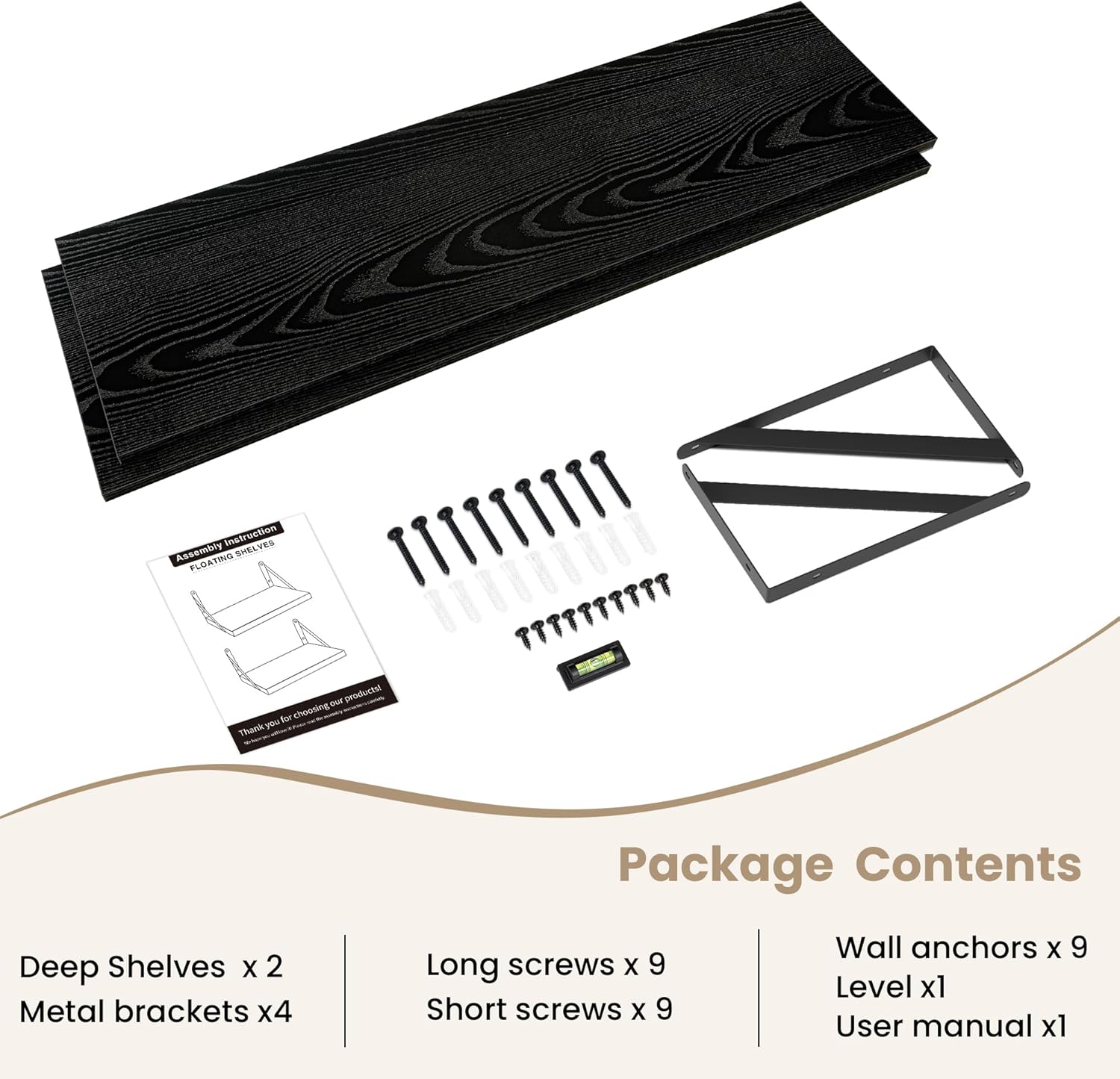 - Easy to assemble: Easy to install in minutes with the installation manual. In addition, when you mount our deep floating shelves firmly on the wall, they can hold up to 70 lbs of weight.
