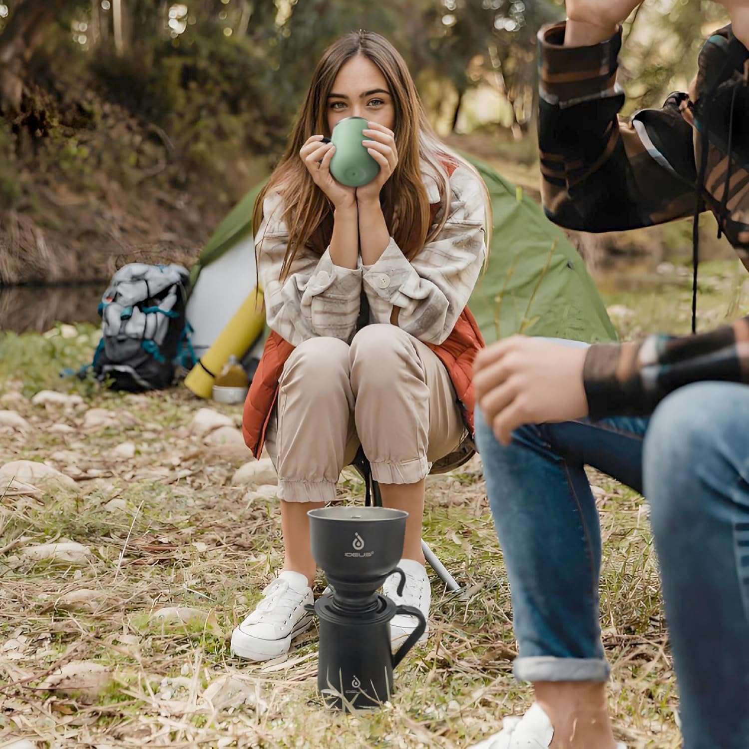 IDEUS Brew Pour Over Dripper, Portable Stainless Steel Reusable Filter Manual Camp Coffee Maker BPA-Free for Home, Office & Camping (Camp Dripper-Black)