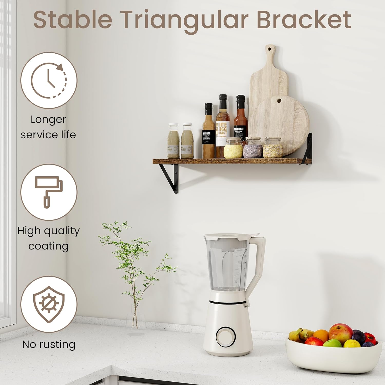 - Sturdy & Durable: These floating shelves are crafted from sturdy particleboard and metal brackets, designed to withstand the test of time. Their robust construction ensures they can support a variety of items without sagging or warping, making them a reliable addition to any home.