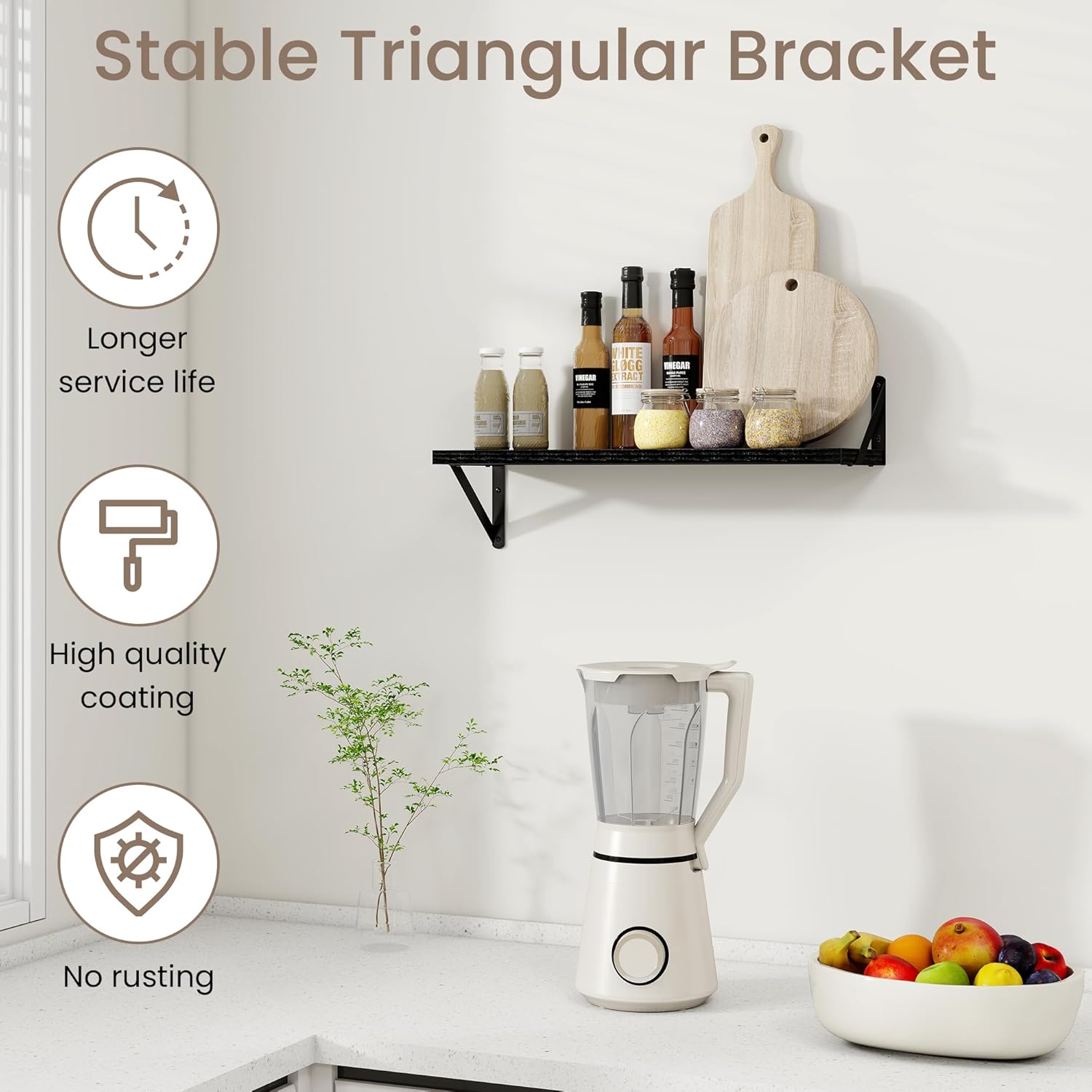 - Sturdy & Durable: These floating shelves are crafted from sturdy particleboard and metal brackets, designed to withstand the test of time. Their robust construction ensures they can support a variety of items without sagging or warping, making them a reliable addition to any home.