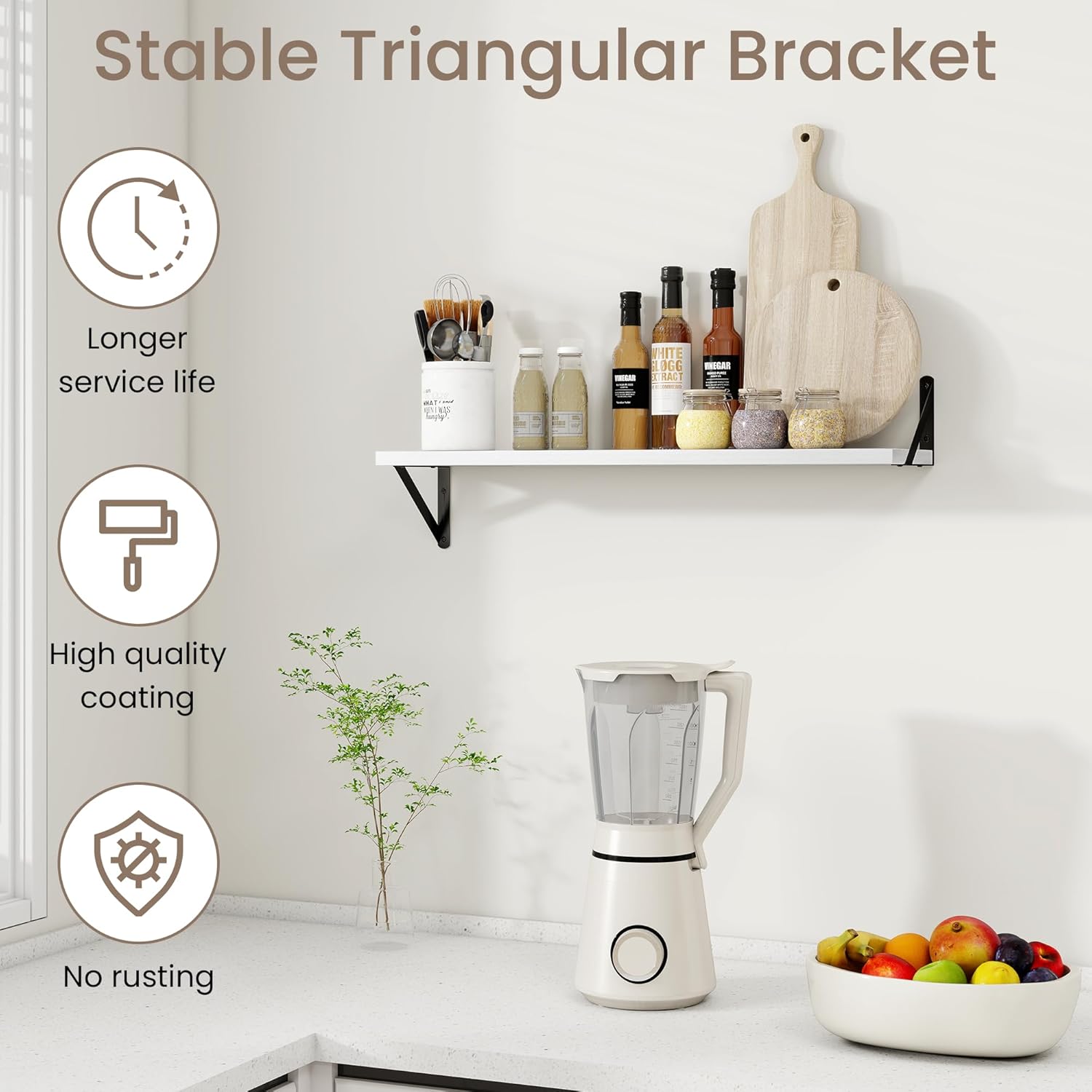 - Wide Application: These floating shelves are perfect for any room in your home. Use them in the living room to display artwork, in the kitchen for spices and utensils, in the bathroom for toiletries, or in the bedroom for books and accessories. Their versatility ensures they meet your storage and decor needs wherever you place them.