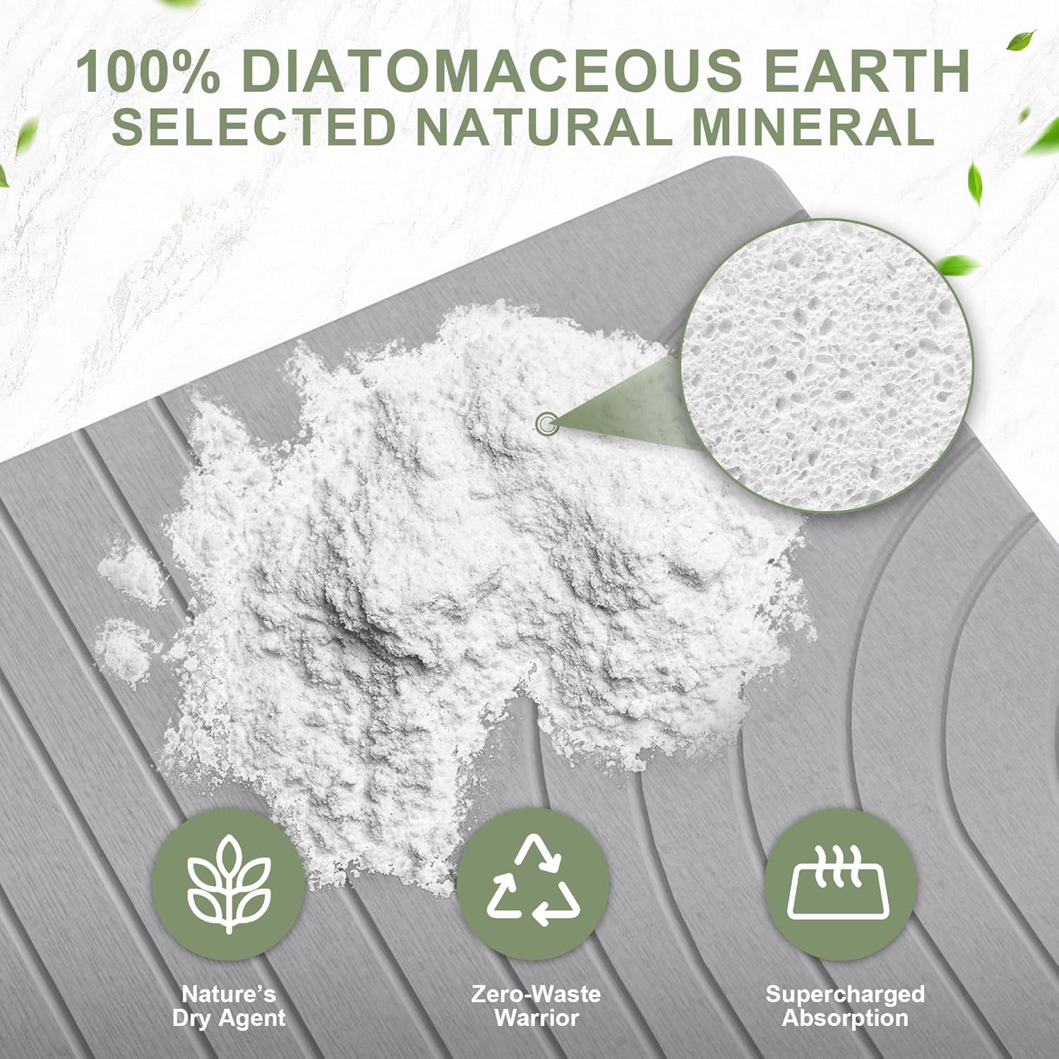 - [NATURAL DIATOMACEOUS EARTH DRYING MAT]:This stone dish drying mat is made of natural diatomaceous earth in the material, which is natural and environmentally friendly, non-toxic and safe. The stone drying mat lasts longer than traditional drying mats and ensures that your kitchen countertops are drier and tidier while in use.