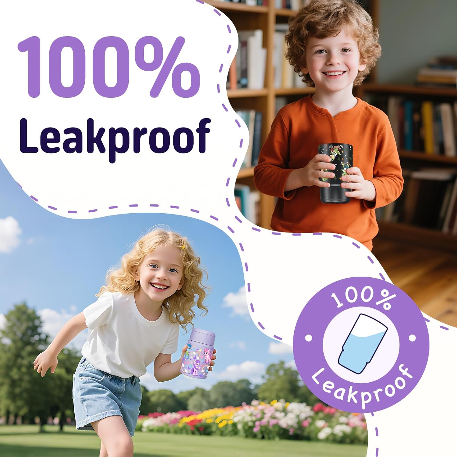 - 【Leak-proof and versatile design】Double-layer lid system with pressure-relief valve prevents spills and enhances insulation. Outer lid doubles as a mini bowl for convenient serving. Non-slip rubber base keeps jars stable on any surface.
