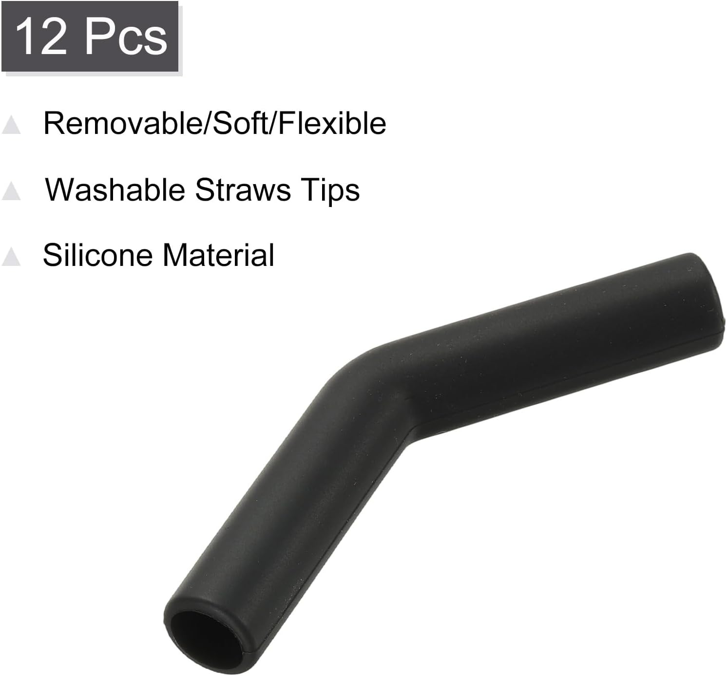 uxcell 12Pcs Silicone Straw Tips, Silicone Straw Elbows Tip, Soft Reusable Metal Straw Covers Fit for 10mm/0.39" OD Stainless Steel Straws, Black