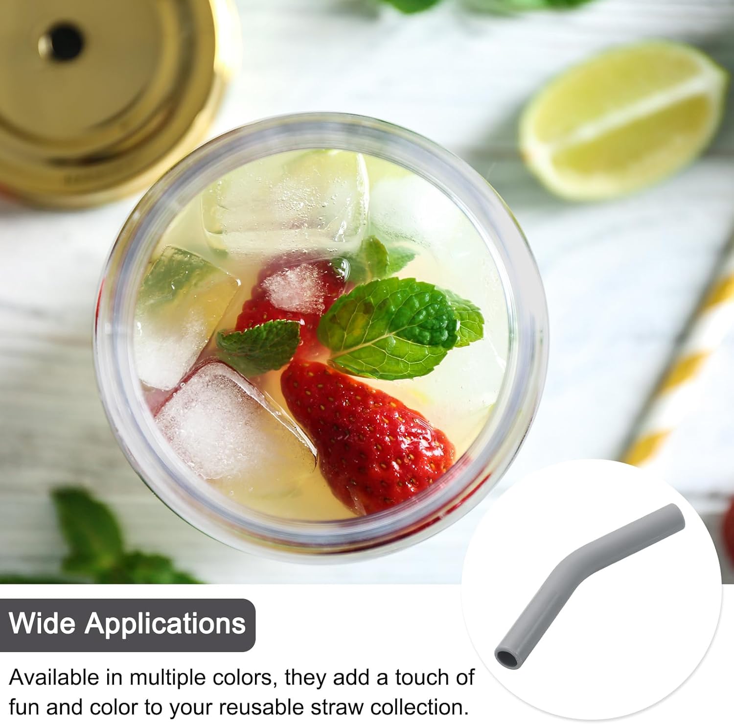 - [Product Dimension] Outside Diameter: 10mm/0.39"; Inside Diameter: 8mm/0.31"; Height: 87mm/3.43"; Color: Grey; Package Contents:12pcs x Reusable Silicone Straw Elbows Tips.