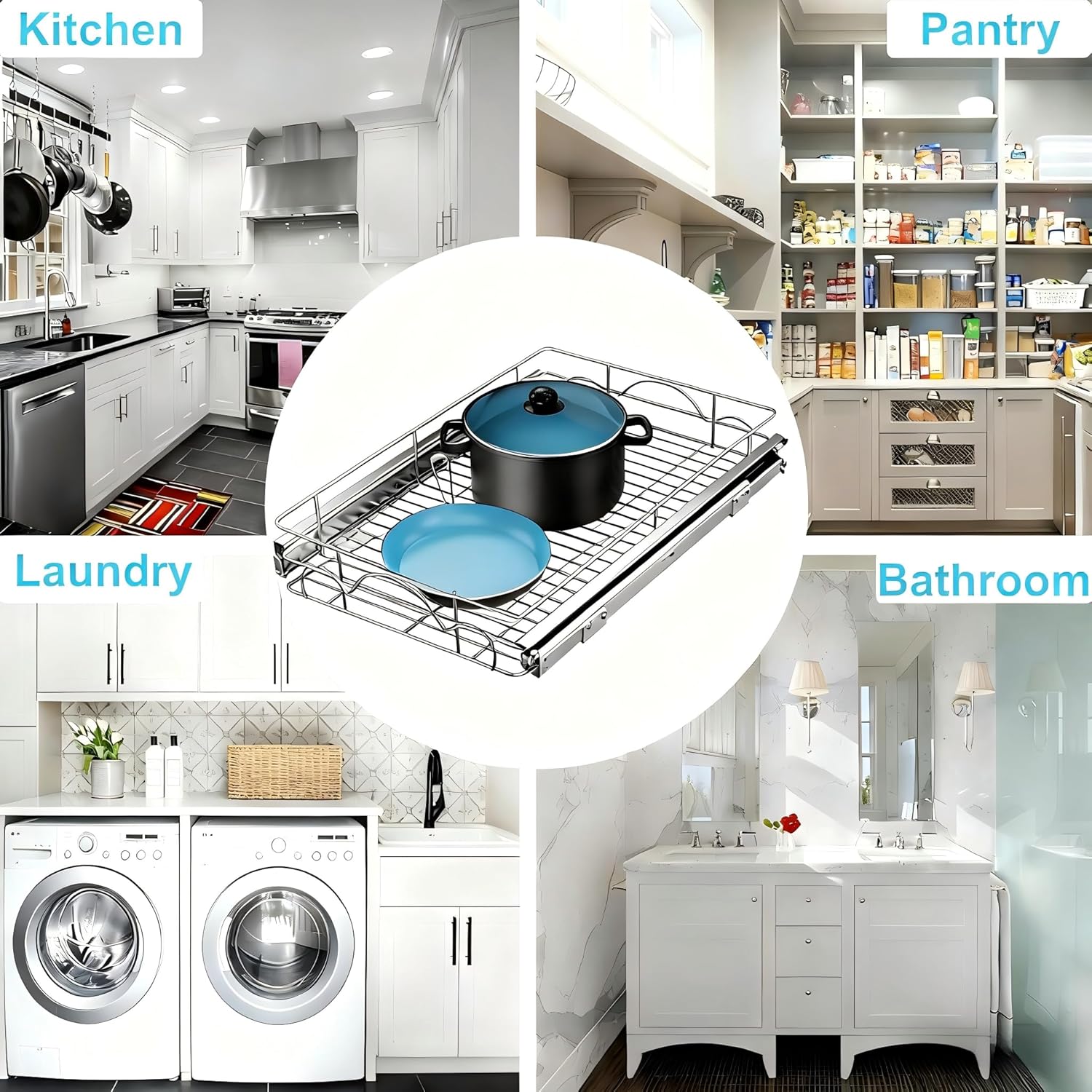 14" Wx21 D Pull Out Cabinet Organizer, Home Shelf Organization, Heavy-Duty Pull Out Shelves for Cabinets, Slide Out Drawers Organizer for Kitchen, Pantry