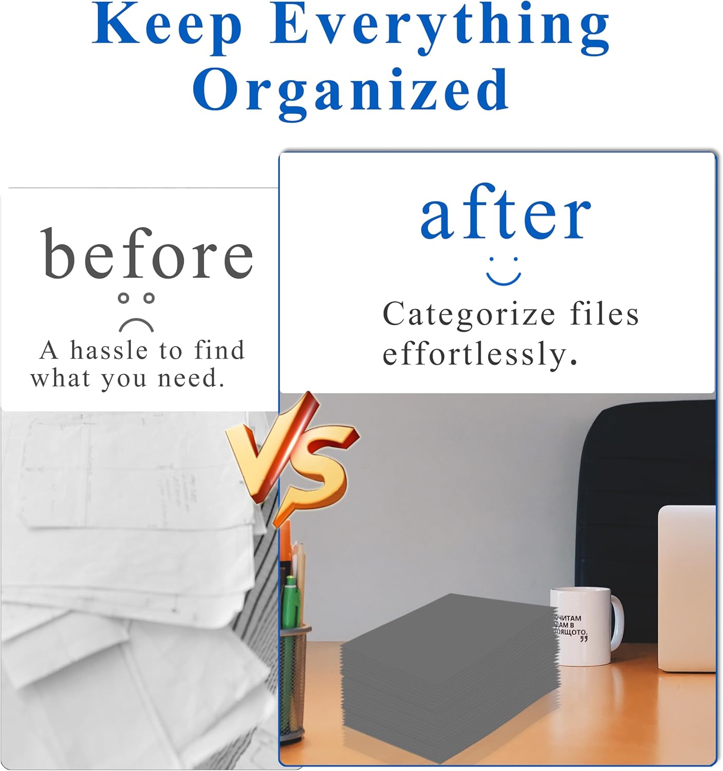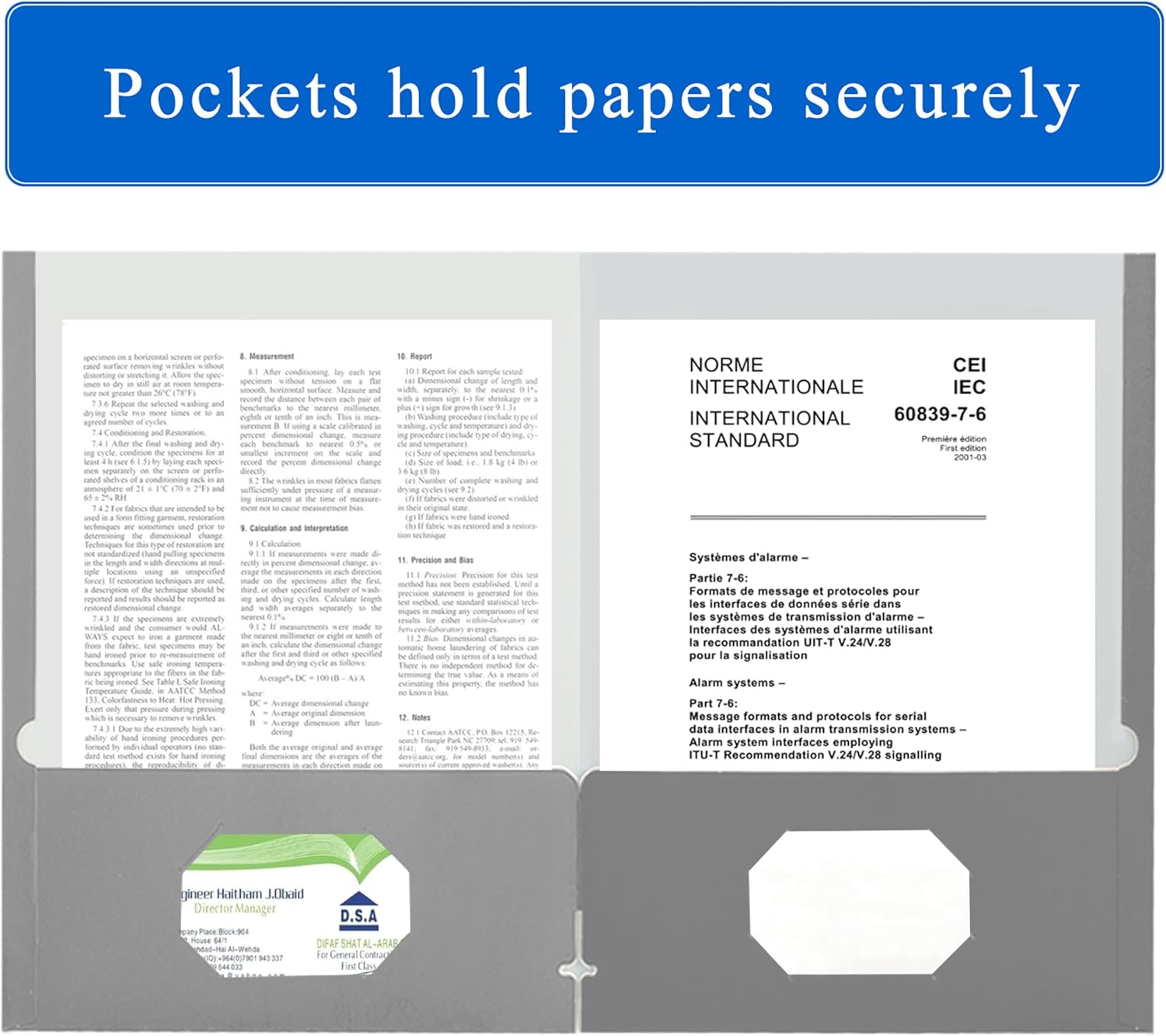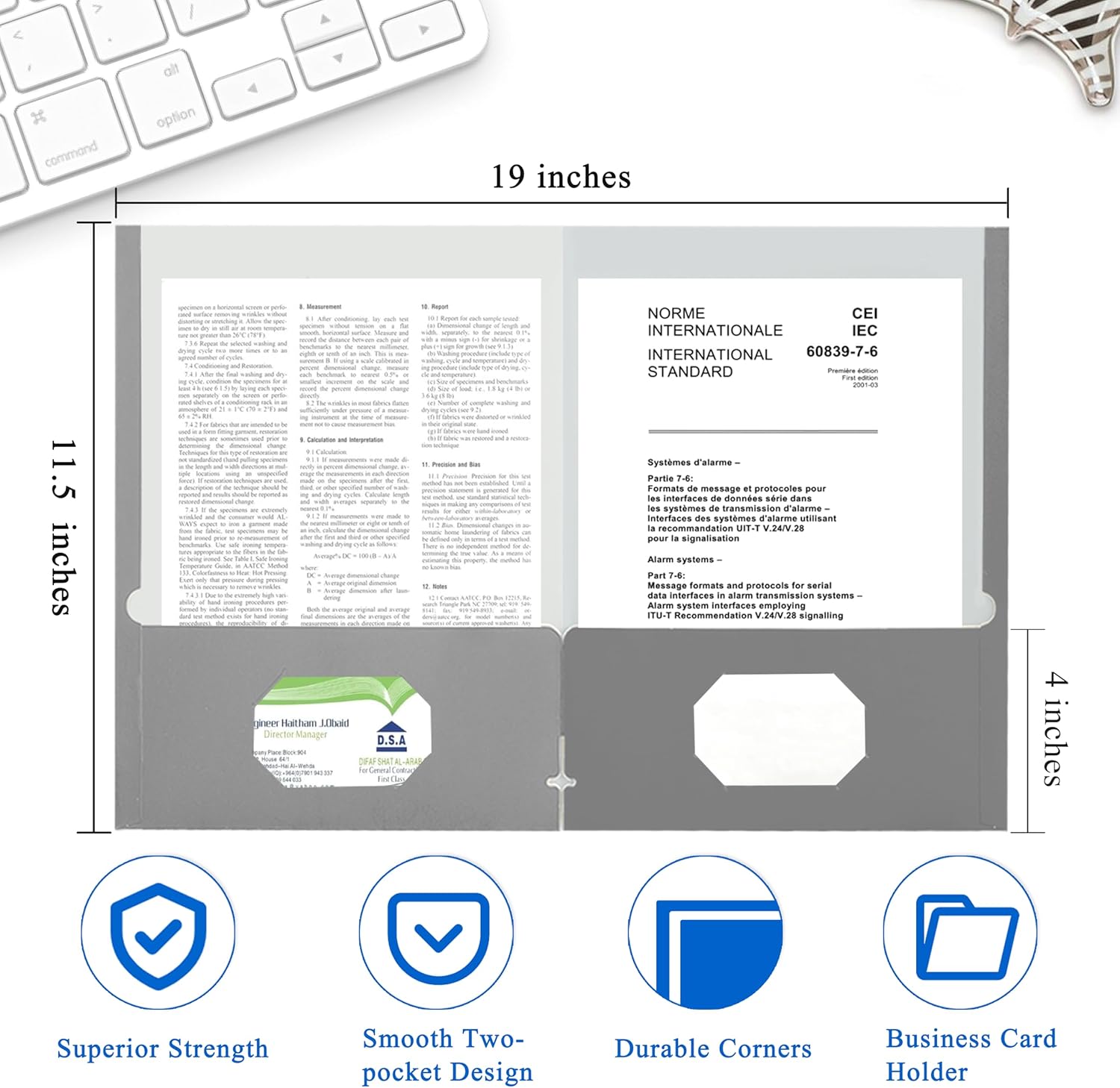 - PACKAGE INCLUDES: 50 packs grey file folders with 2 pocket folders and 2 business card slot, 100 plus Sheet Capacity, enough use for you, perfect for school, paperwork, office, business.