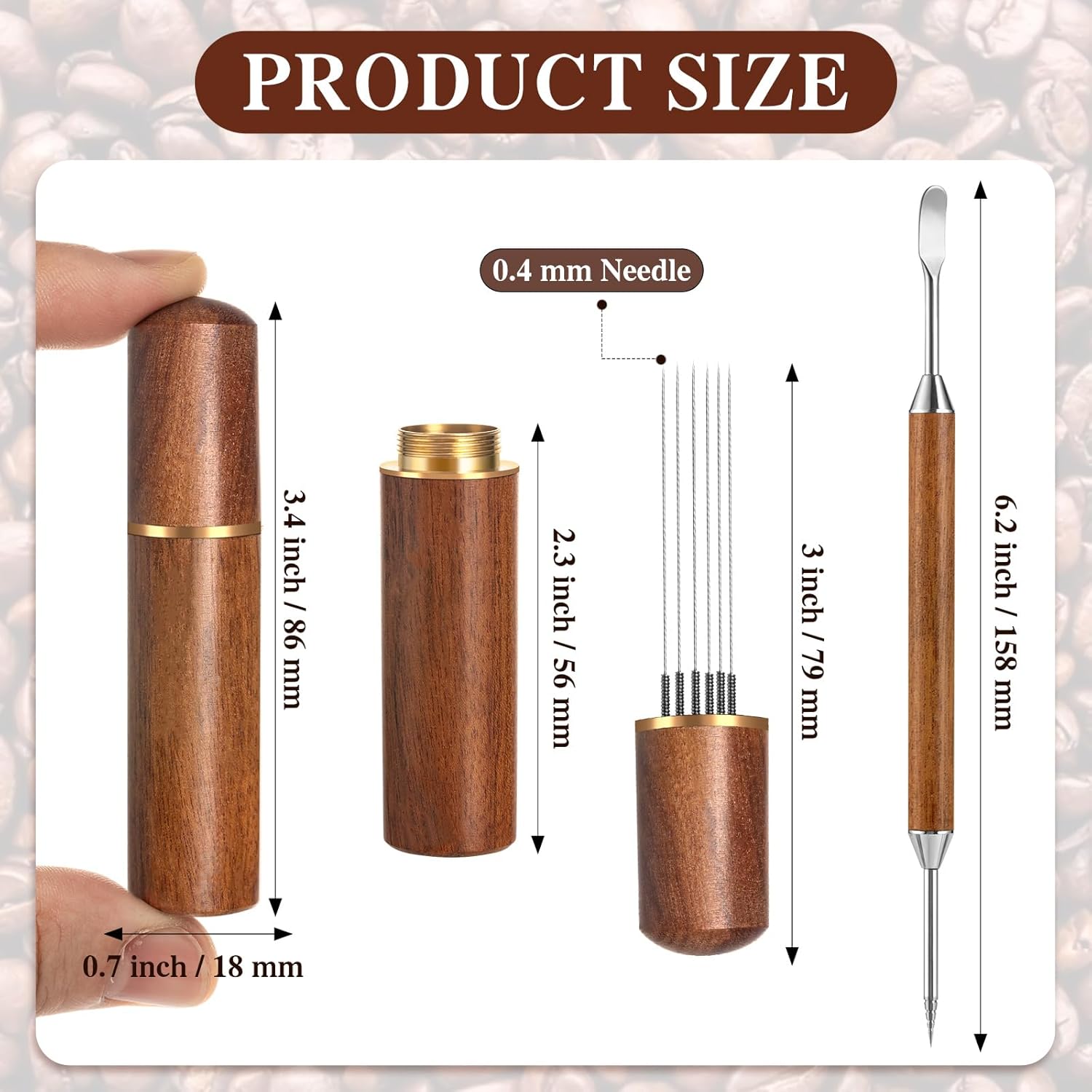- Quality Materials: The handle and stand of our espresso distribution tool are made of natural wood, and the needles are made of high-quality stainless steel, which are high elasticity, rust resistance, and corrosion resistance. The coffee spoon is also made of high-quality stainless steel, safe and healthy to use, and long-lasting