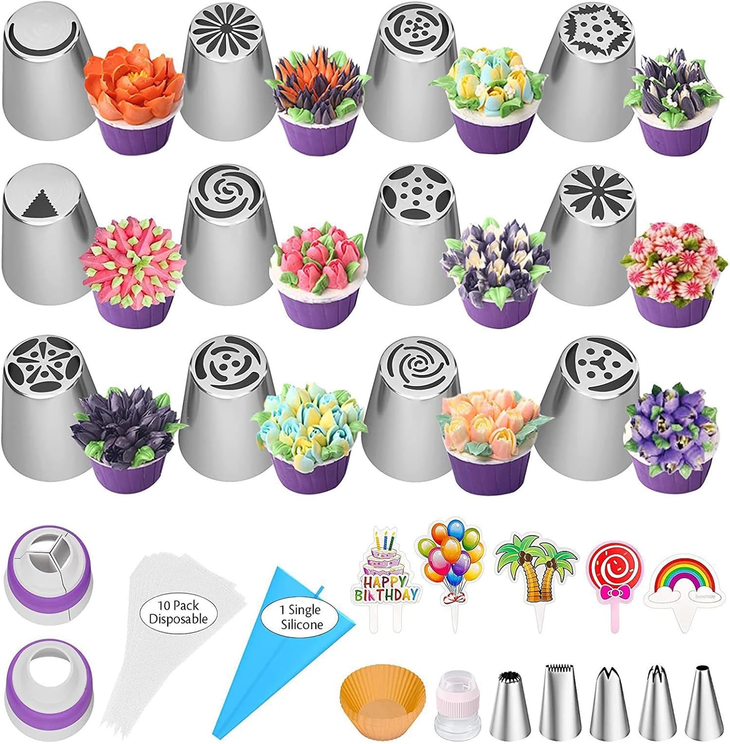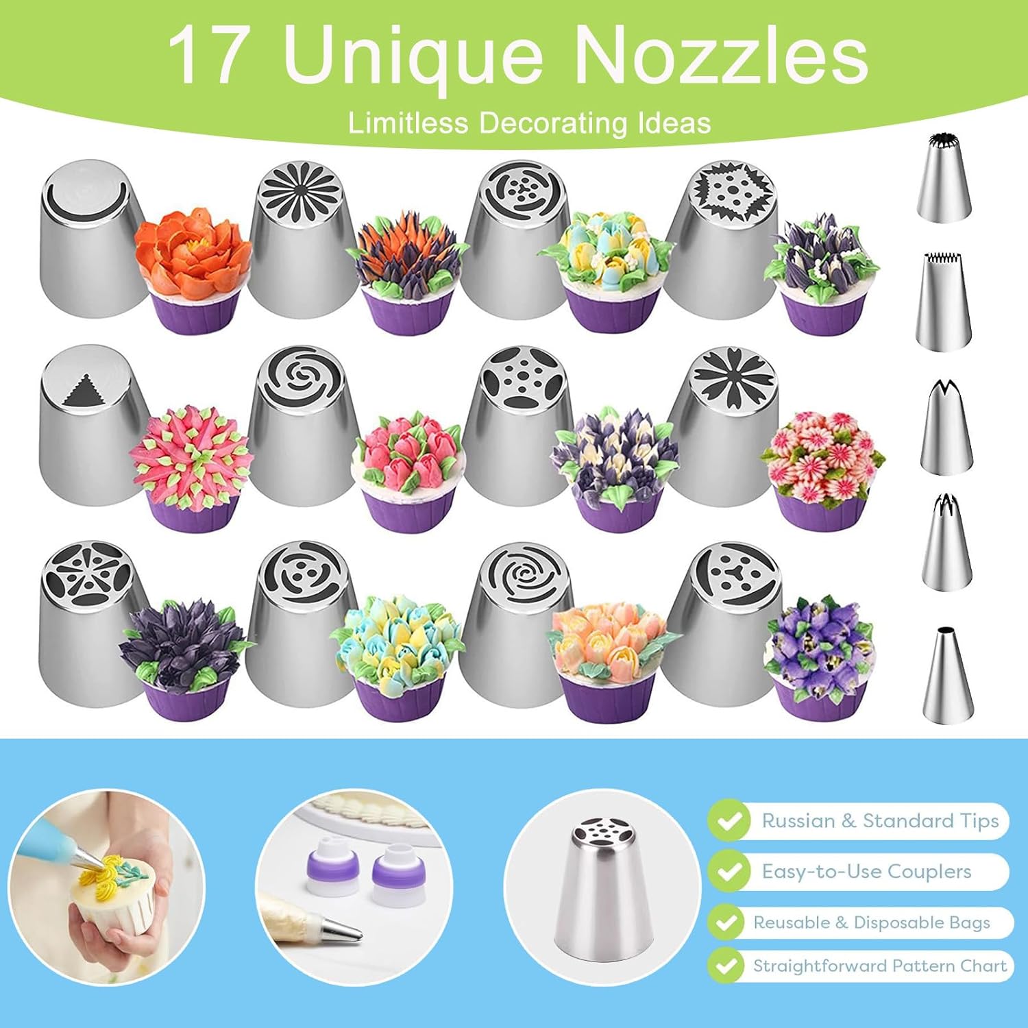 - 【Create Stunning Designs】 With 17 russian piping tips, this cake decorating kit allows you to create multiple patterns for cake decorating and cupcake decorating. Whether you're a beginner or a professional baker, this kit makes cake frosting easy and fun.
