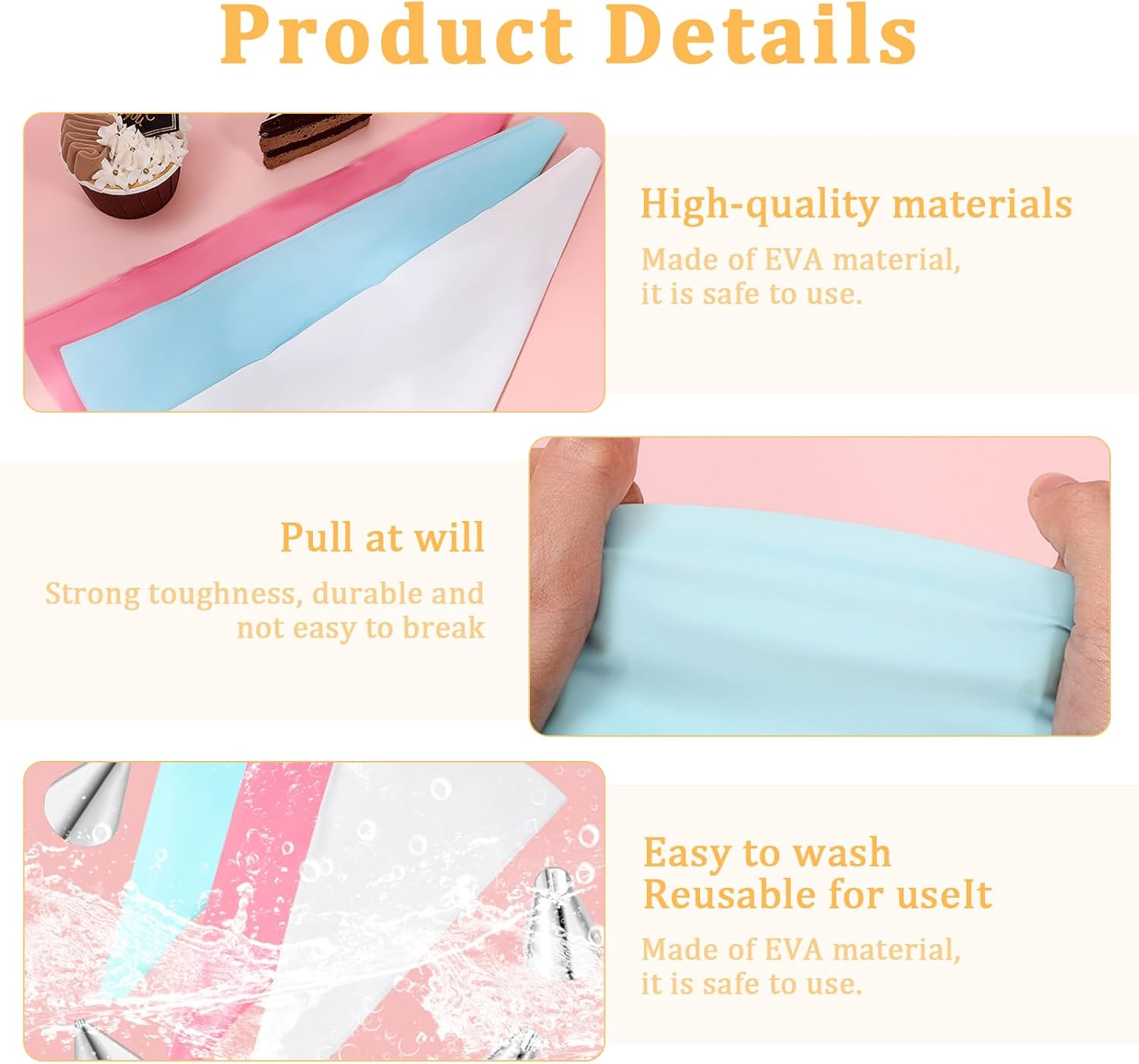 - 【User-Friendly Features】The included reusable piping bags feature a smooth interior for easy icing flow and textured exterior for secure grip. The set comes with handy scrapers to help achieve perfect frosting consistency every time. All components are dishwasher safe for effortless cleaning.