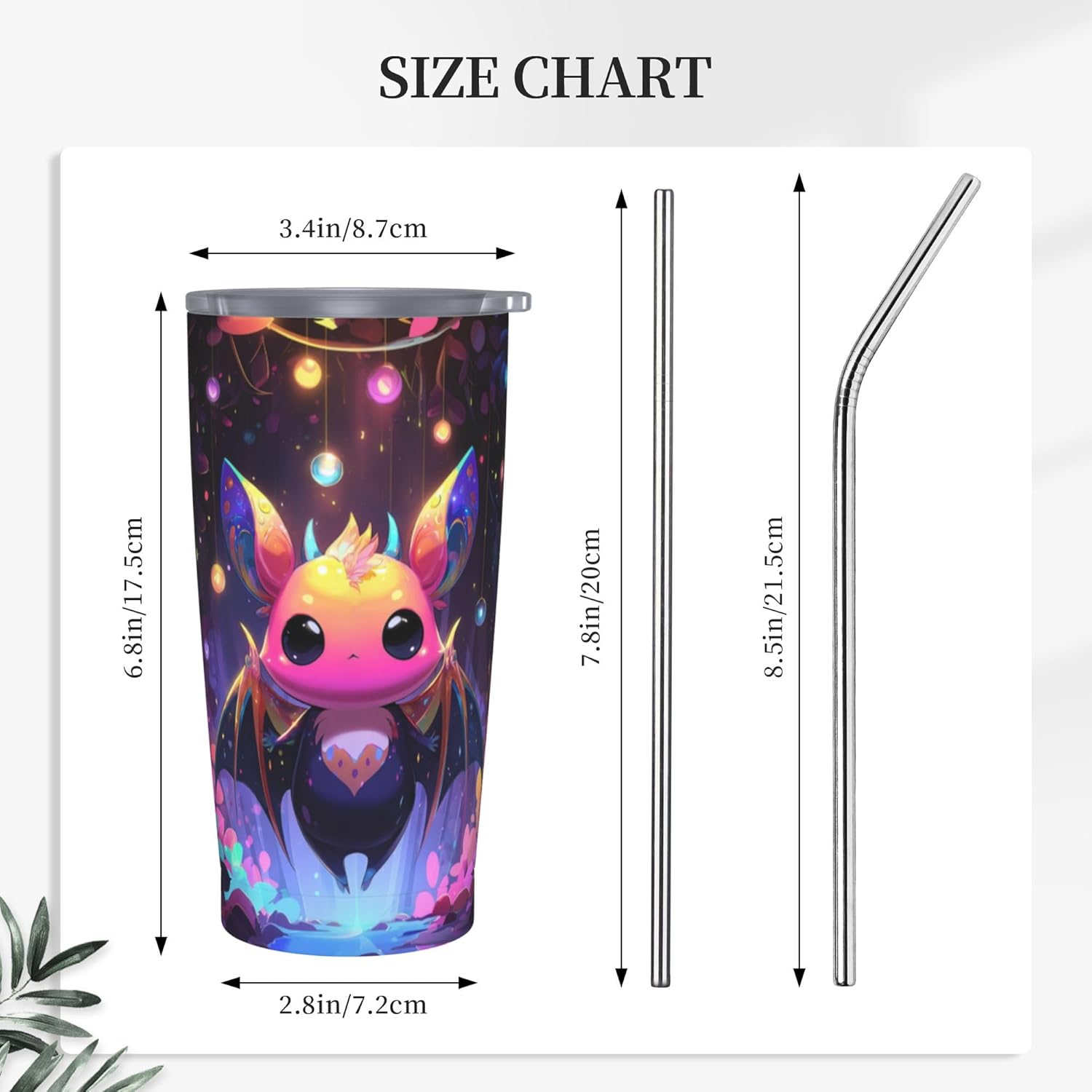 Bat Tumbler with Lid and Straw 20oz Coffee Tumblers Leakproof Stainless Steel Travel Mug Vacuum Insulated Cup for Iced and Hot