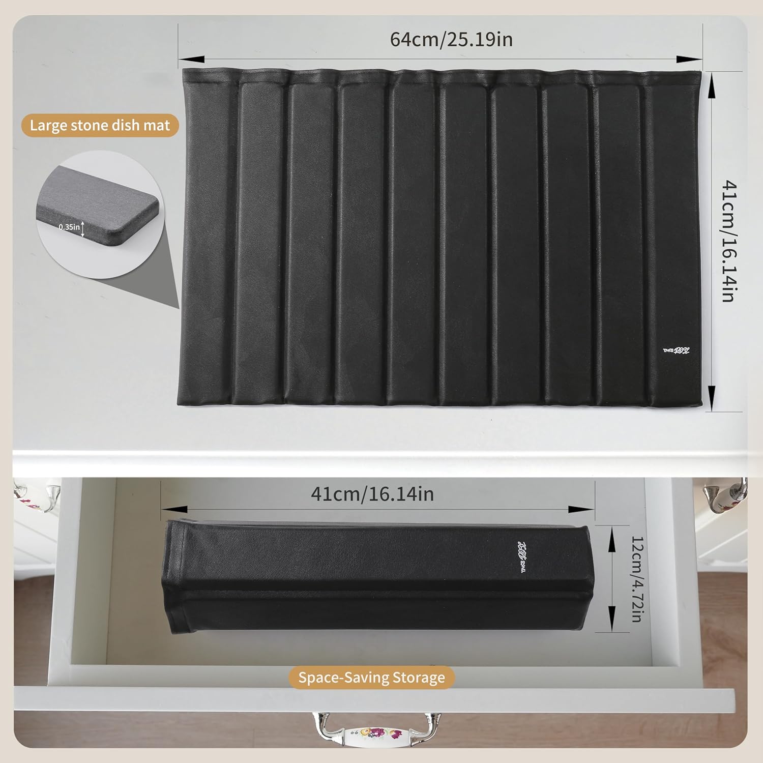 - 【QUICK DRYING & SUPER ABSORBENT】Made from diatomaceous earth, this stone drying mat features millions of micropores that rapidly. Safe for all ages and free from harmful chemicals, it keeps your sink area clean, dry, and protected from water stains or damage.