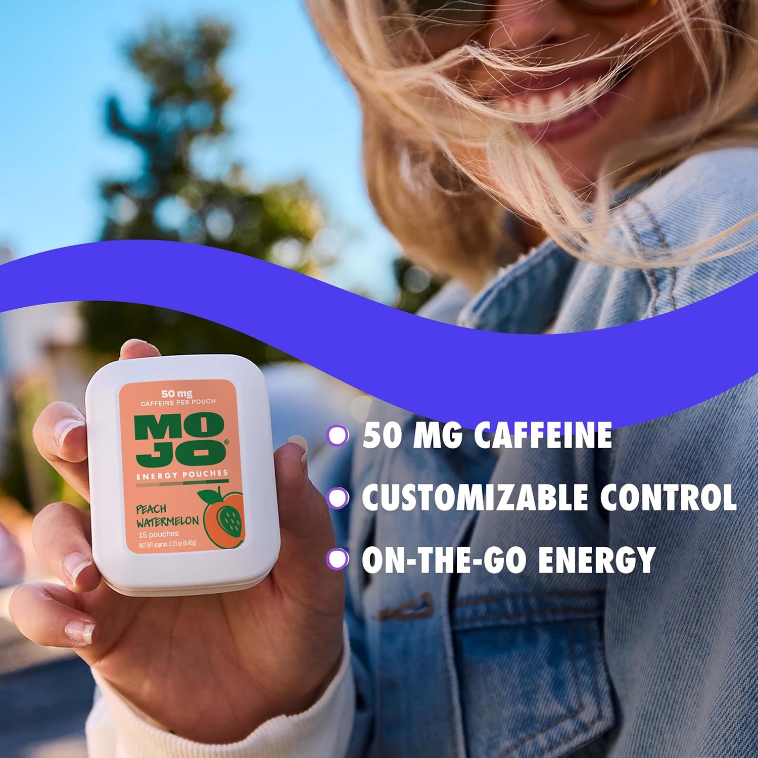 MOJO Energy Pouches Peach Watermelon Flavor, 50 mg per Caffeine Pouch, 15 Pouches, 5-Pack