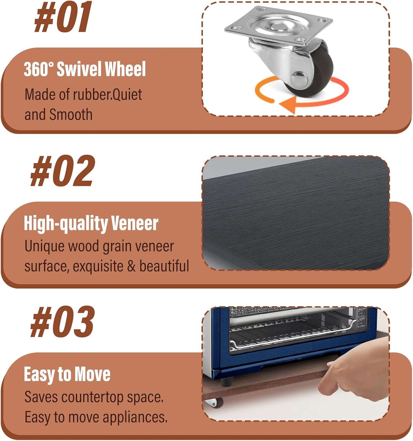 - 【Countertop Rolling Tray】The sliding tray uses 360° rubber wheels, allowing for horizontal or vertical placement and full mobility. Convenient for moving various kitchen appliances.