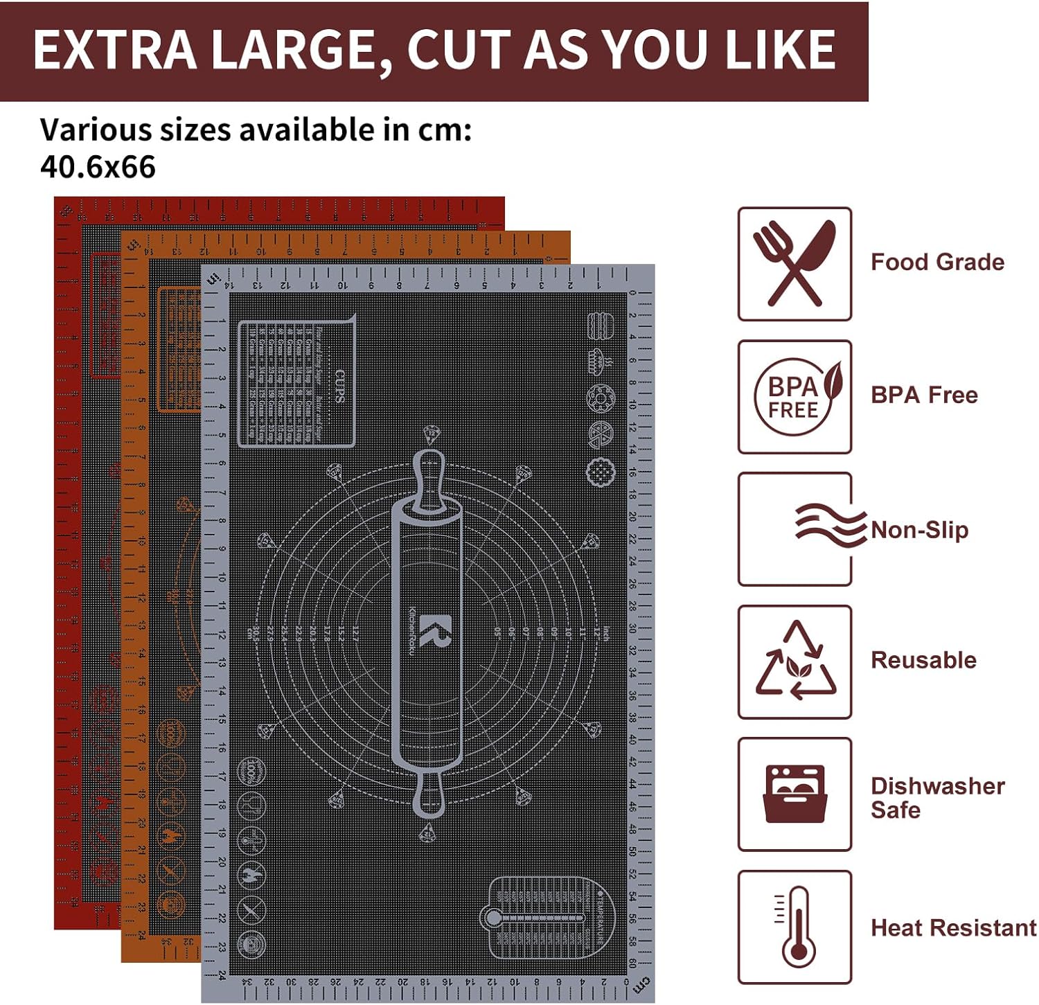- 【Easy to Clean】: Our silicone mat is non-stick surface,If our dough rolling mat is greased or the dough sticks to the surface, it can be hand-washed with soap water and air drying to keep the counter top clean and hygienic.dishwasher safe.