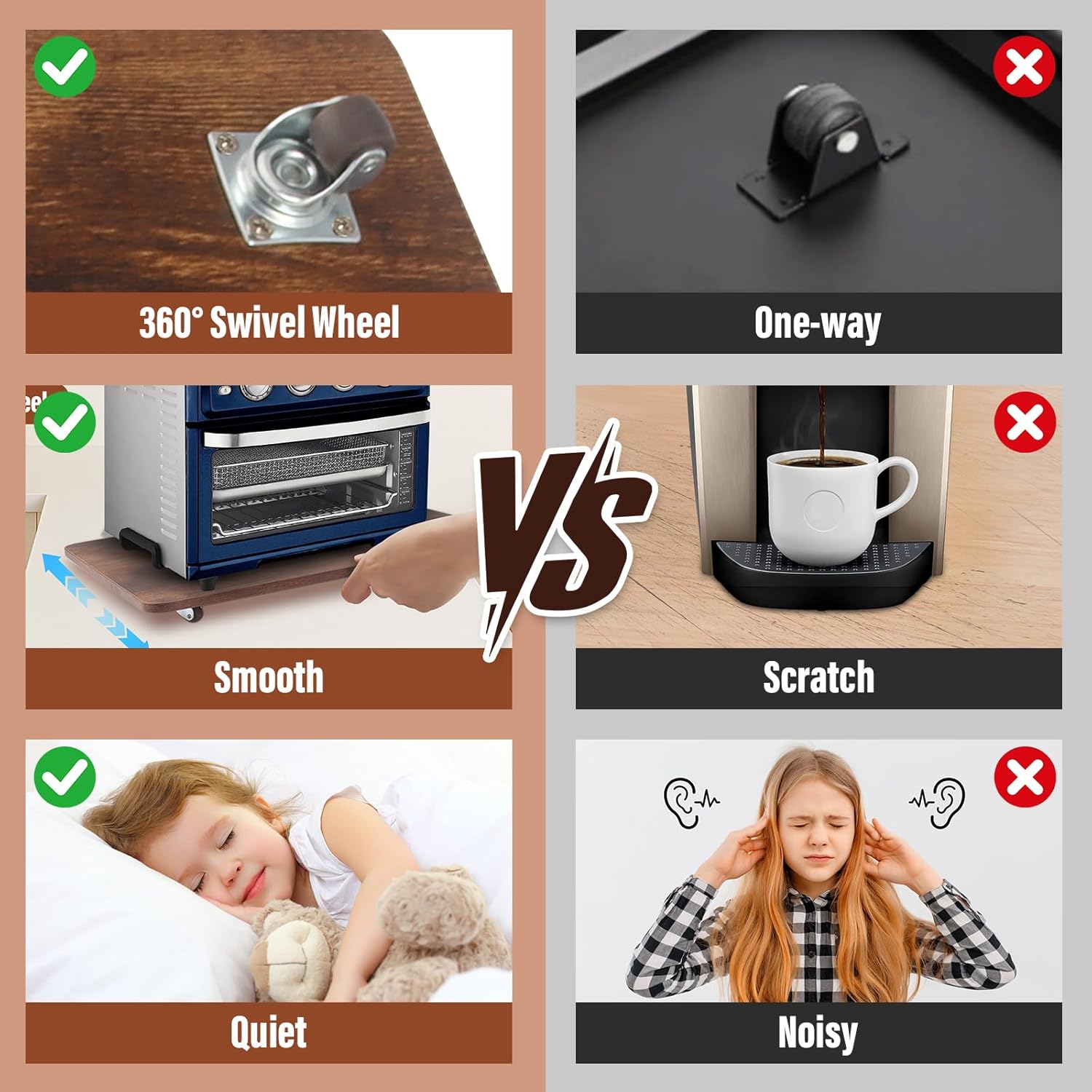 - 【Countertop Rolling Tray】The sliding tray uses 360° rubber wheels, allowing for horizontal or vertical placement and full mobility. Convenient for moving various kitchen appliances.