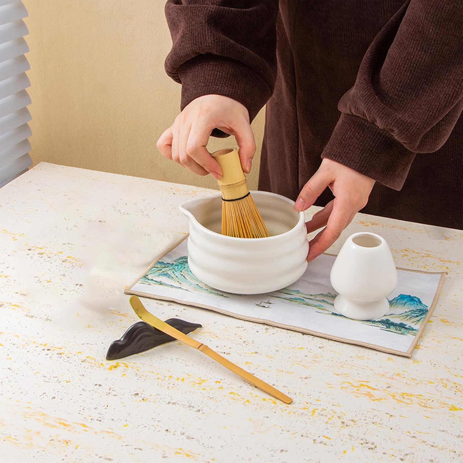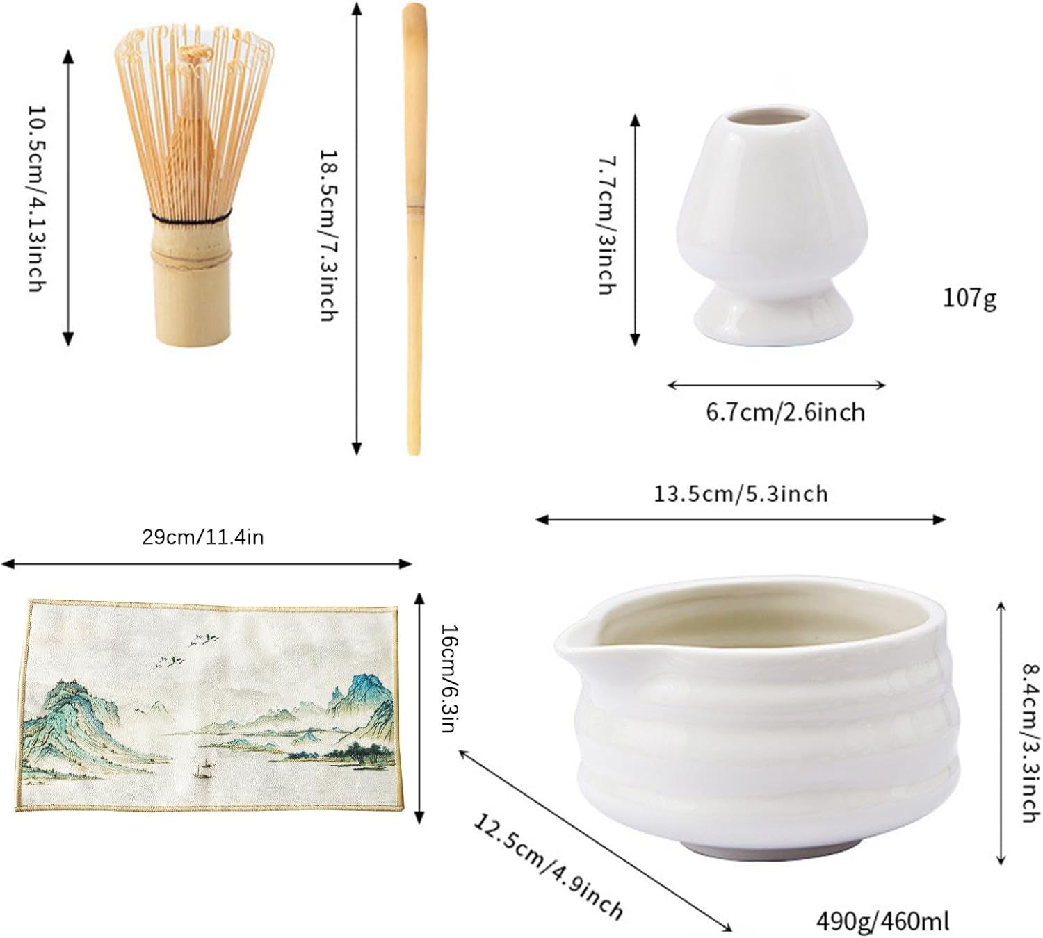 - Included Components : Matcha bowl, Matcha scoop and scoop rest, Matcha sifter, Matcha whisk and holder