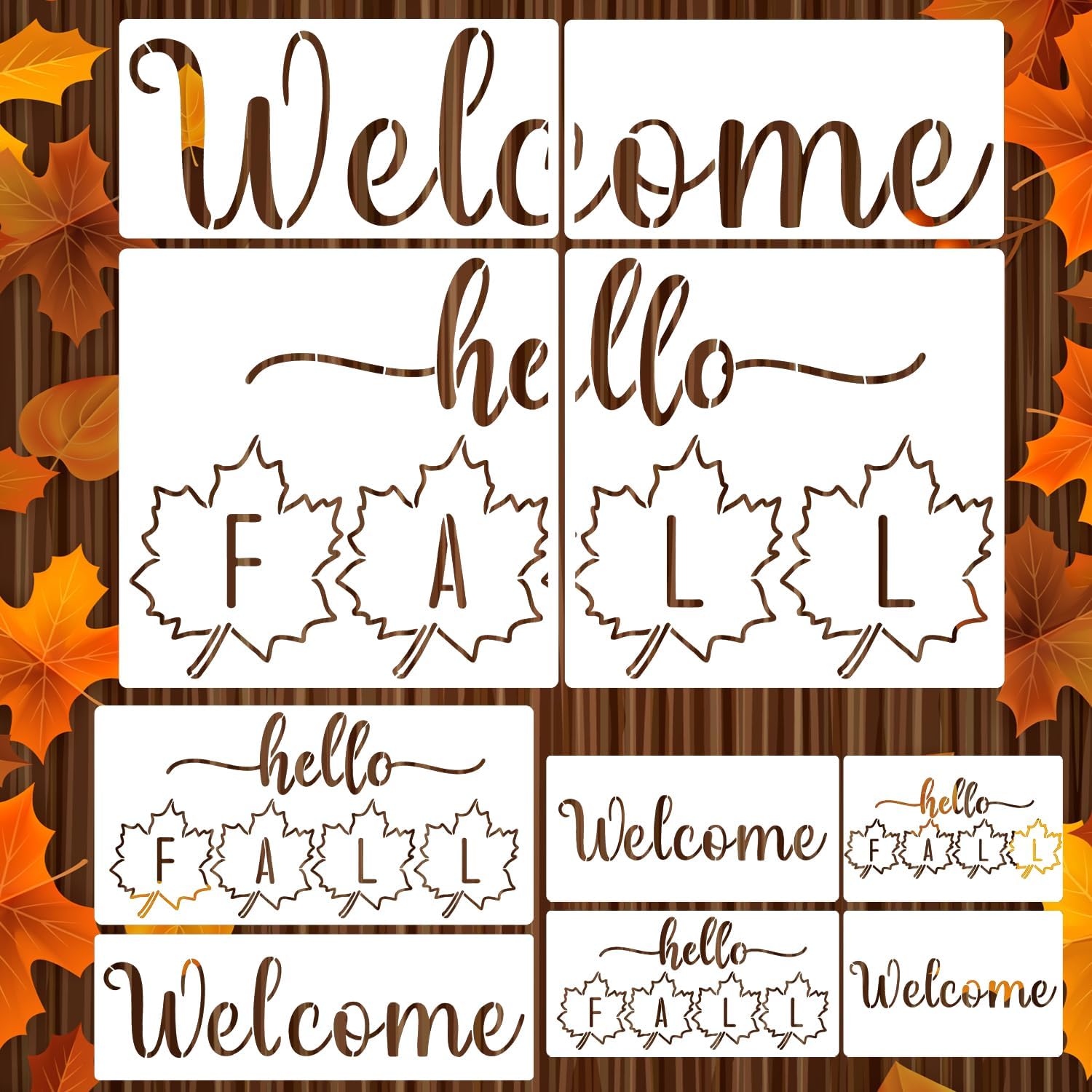 - Fall Stencils:2 Style fall stencils includes 4 different sizes from 6inch to 23.6inch.Perfect for your various crafts needs,such as doormat,large wood sign,round door hanger and pillow cover,etc.