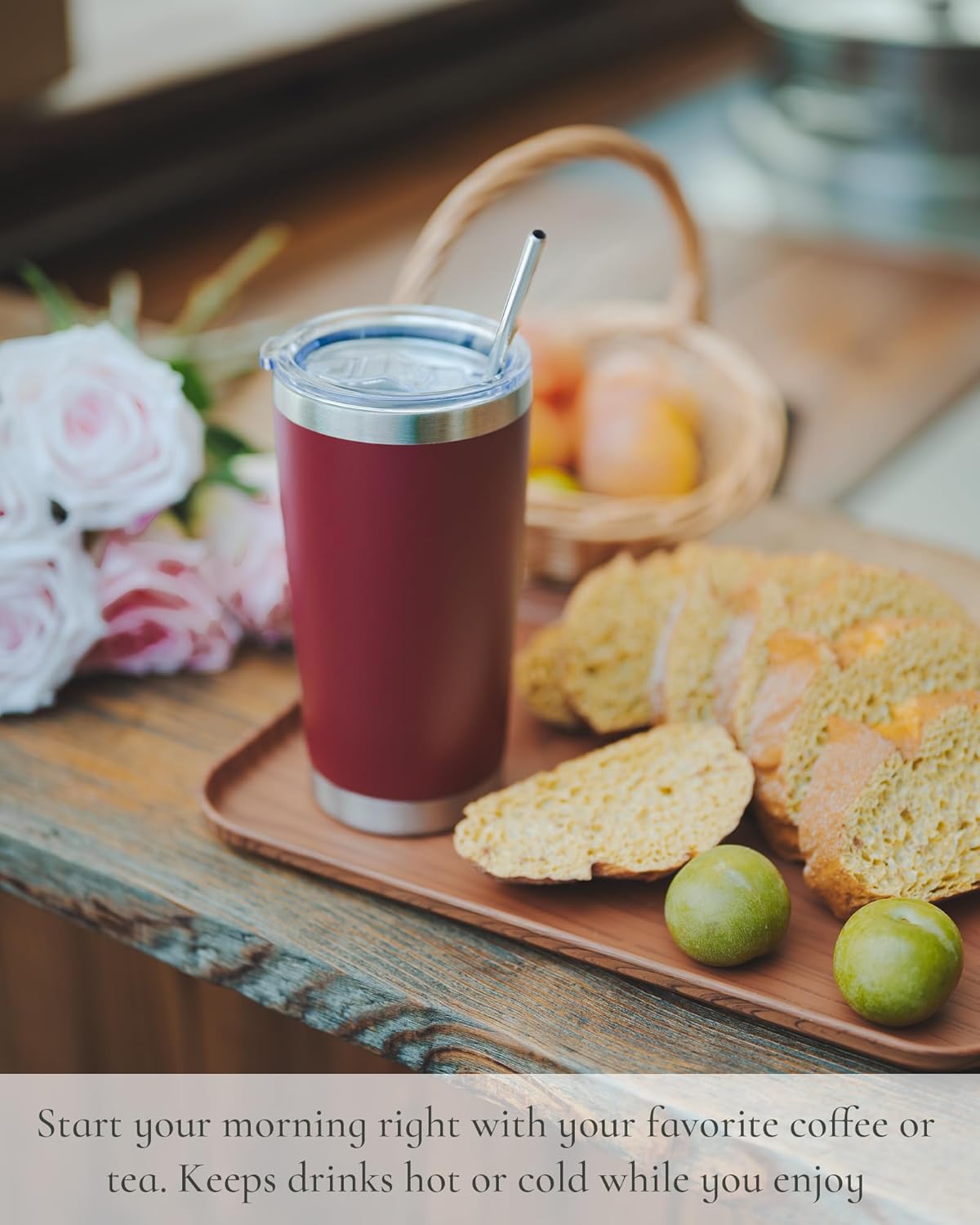 - 【Two Drinking Modes】Comes with a non-slip silicone base and a 304 stainless steel straw. Use the sip opening for direct drinking, or insert the straw when you prefer hands-free sipping—perfect for commuting, work, or relaxing at home