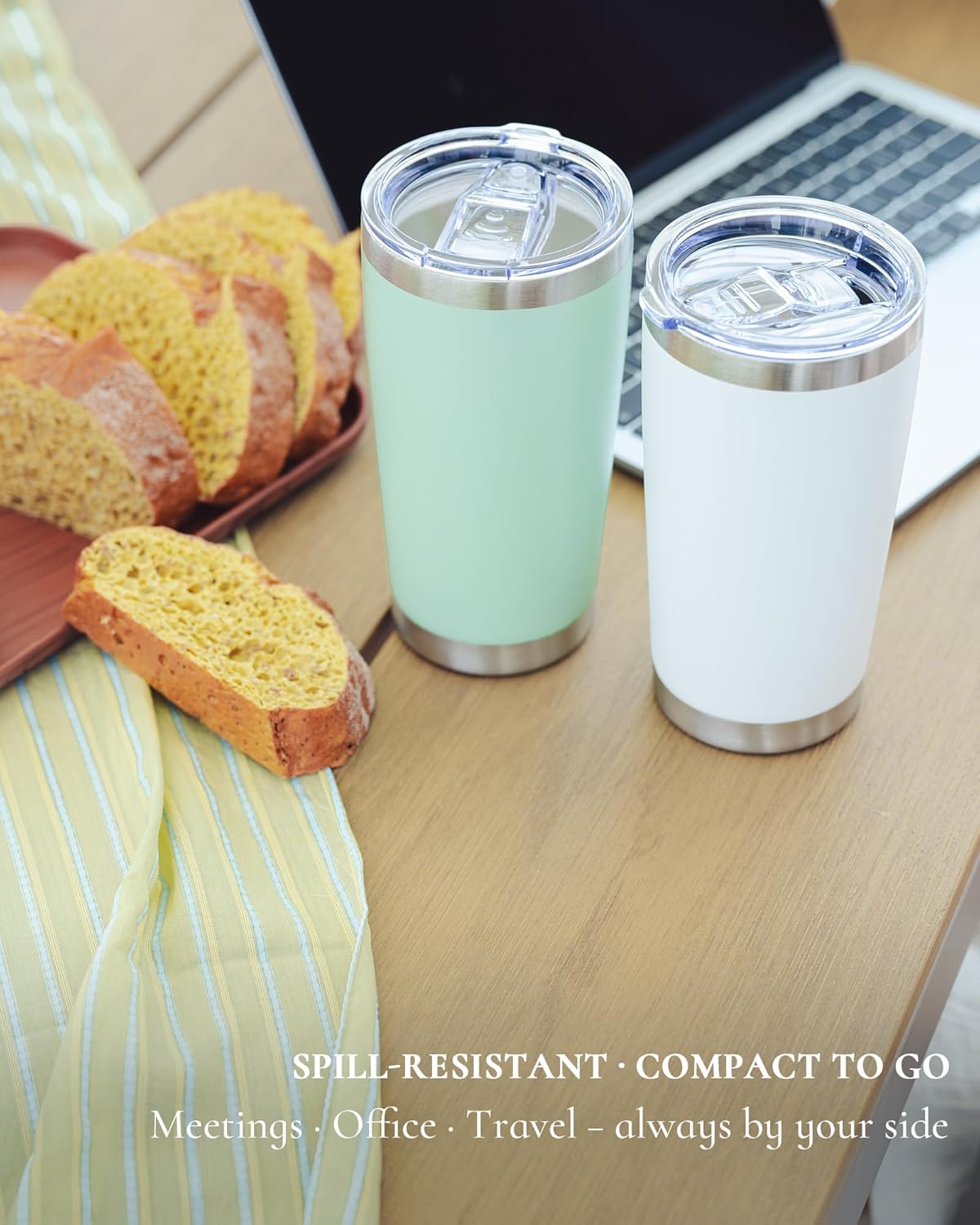 Travel Coffee Tumbler 20oz, 1 Pack Leakproof Travel Coffee Mug with Lid and Straw, Stainless Steel Double Wall Vacuum Insulated Tumbler for Hot/Iced Drinks (Textured Matte, Mint Green)